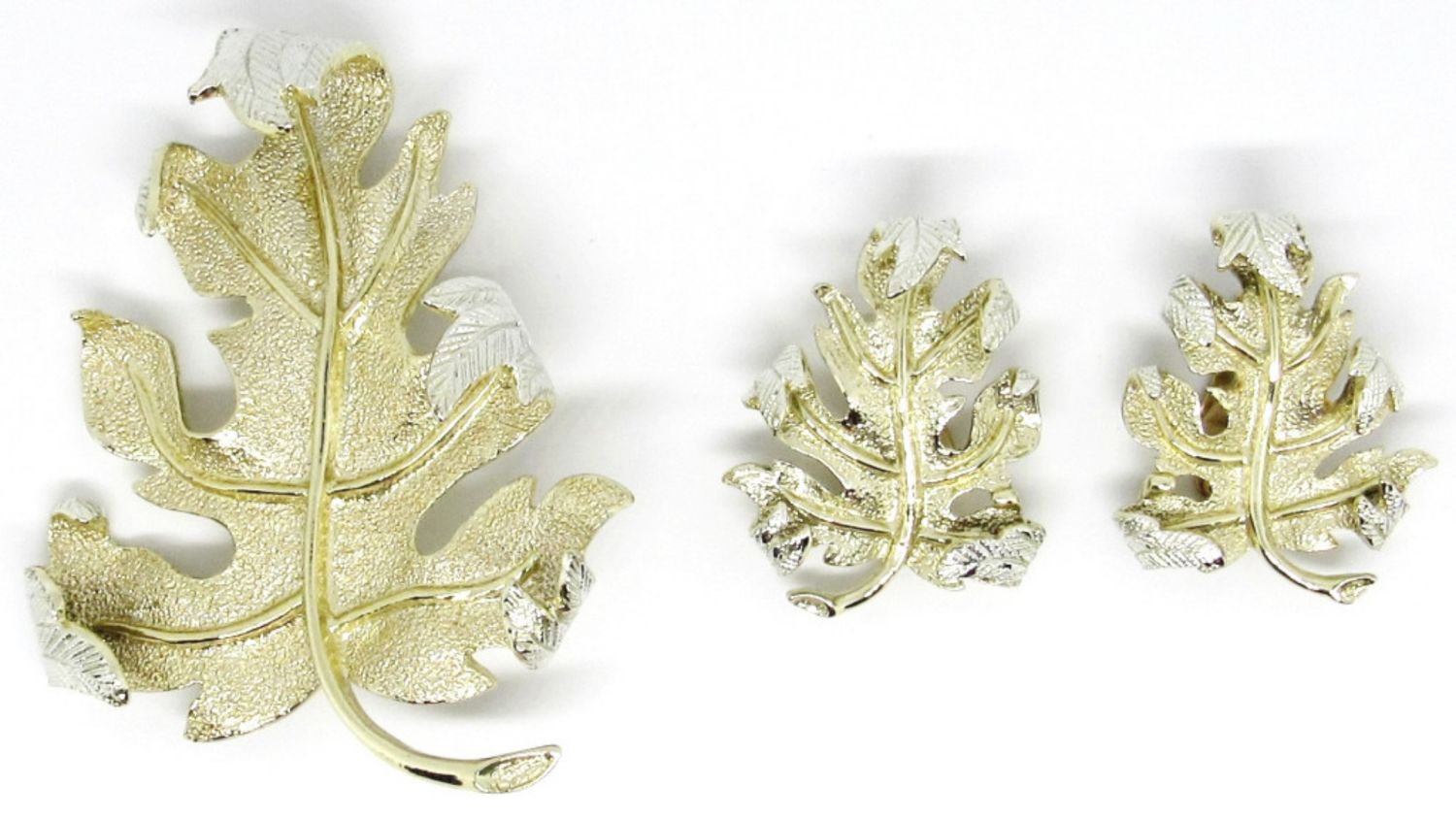 EARRINGS- LEAF SHAPED GOLD AND SILVER TONED