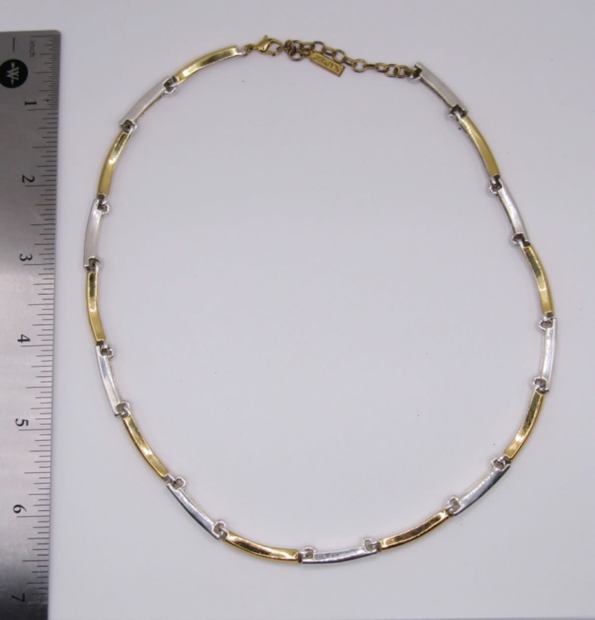 NAPIER SILVER & GOLD TONE LINK SIGNED NECKLACE. ADJUSTABLE