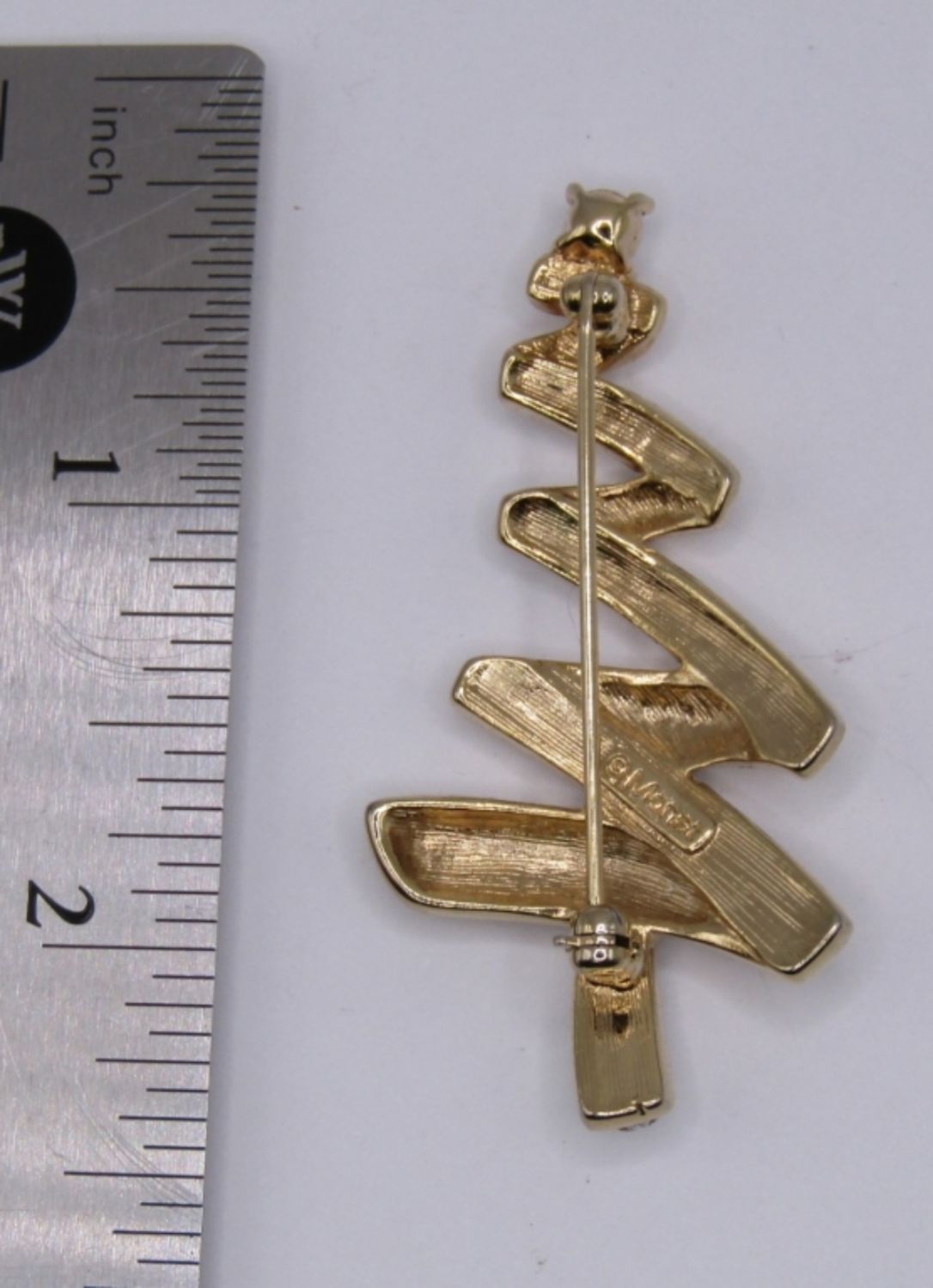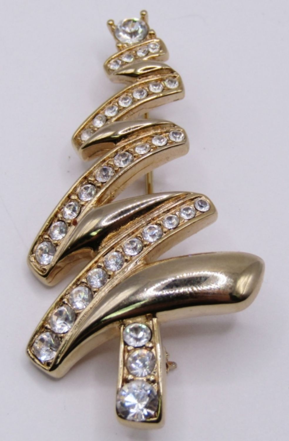 VINTAGE MONET GOLD TONE CLEAR RHINESTONE CHRISTMAS TREE BROOCH