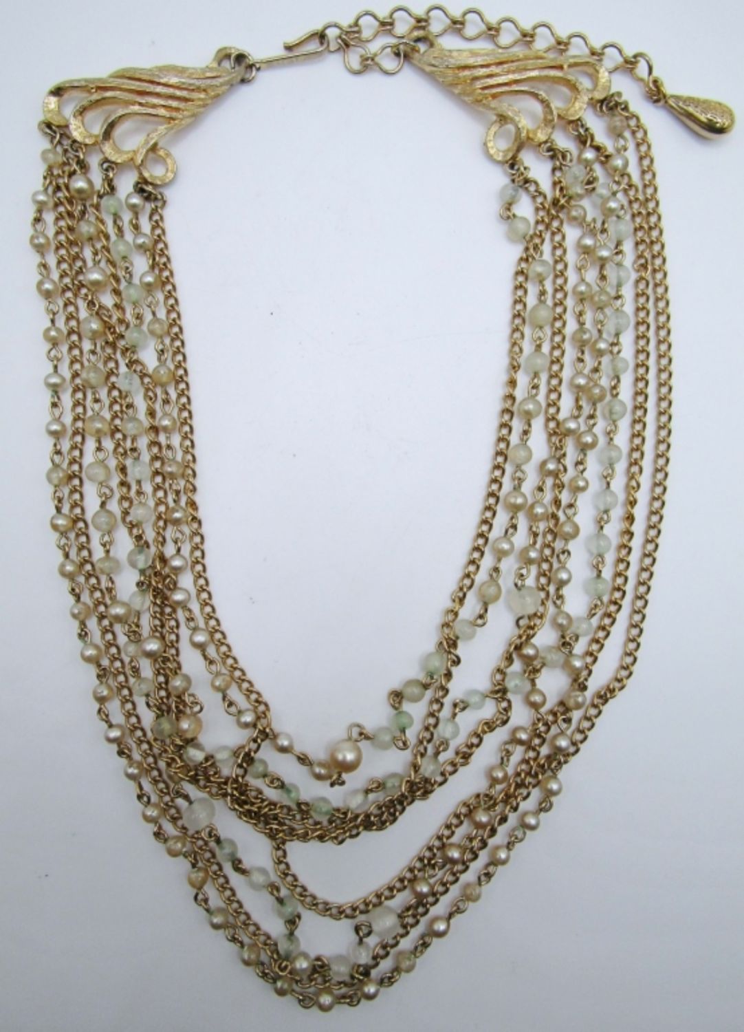 16IN LENGTH, ADJUSTABLE, STAMPED BY MAKER, NECKLACE LAYERED W/WHITE AND CLEAR BEADING