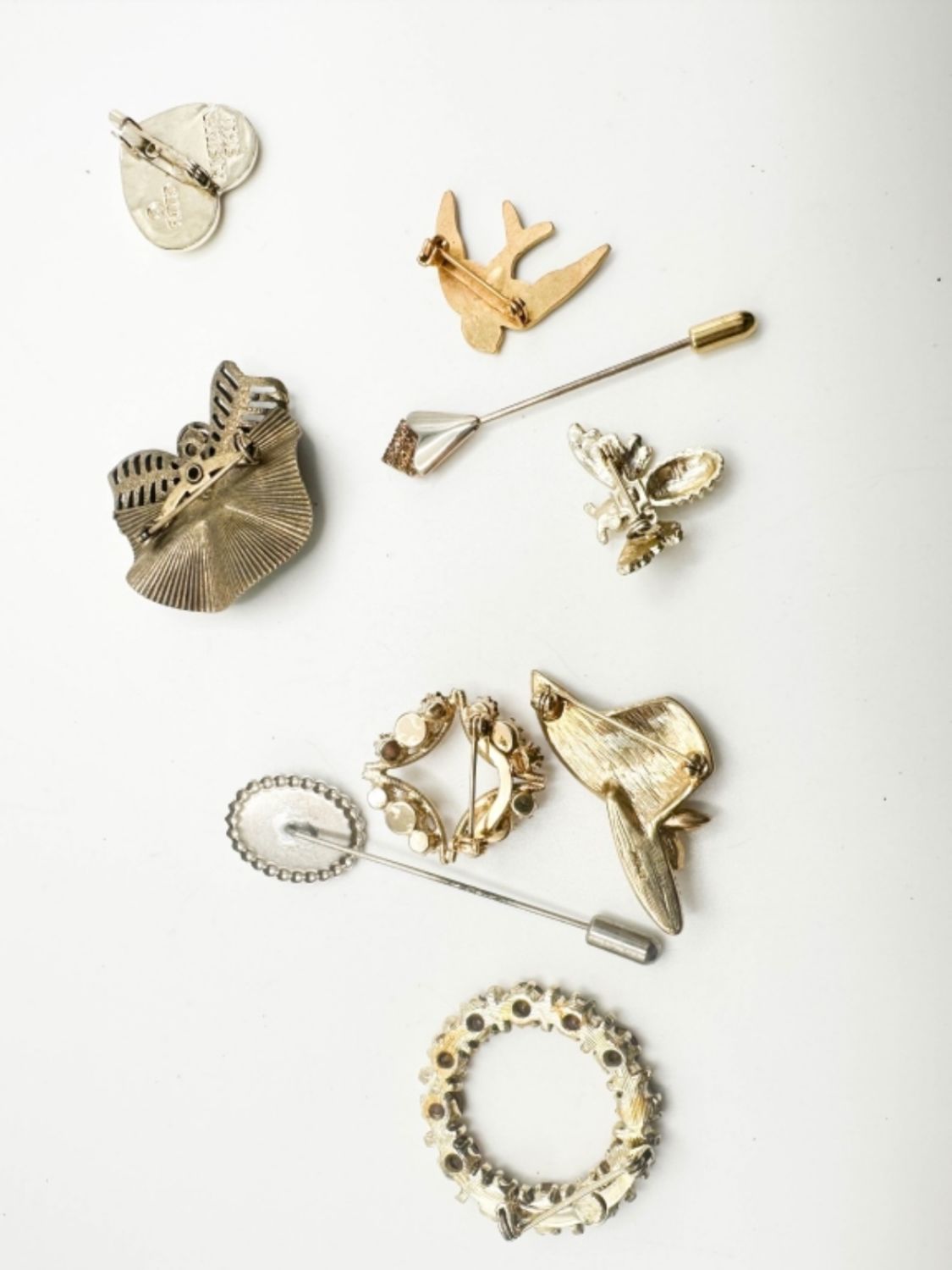 BROOCH ASSORTMENT, HAT, CIRCLES, PINS