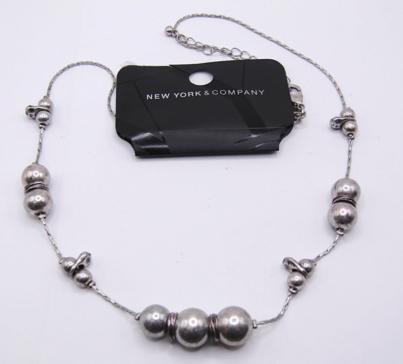SILVER TONE LARGE BEAD NECKLACE, NEW YORK & CO., BRAND NEW WITH TAG