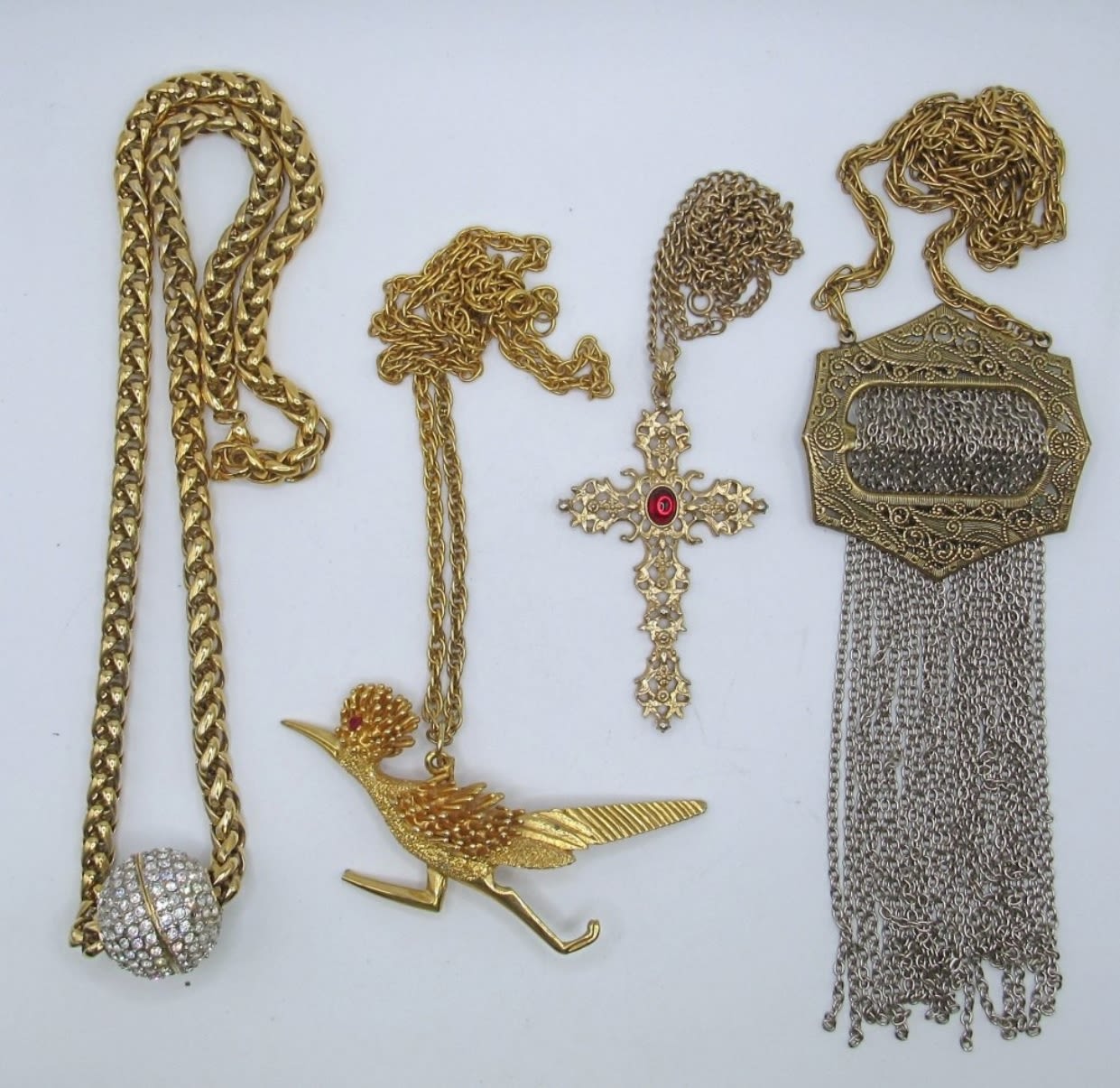 ROADRUNNER 24″ foot missing but unnoticable, CROSS 24″, SPARKLE BALL 22″ missing 3 crystals, BUCKLE w/CHAINS 18″