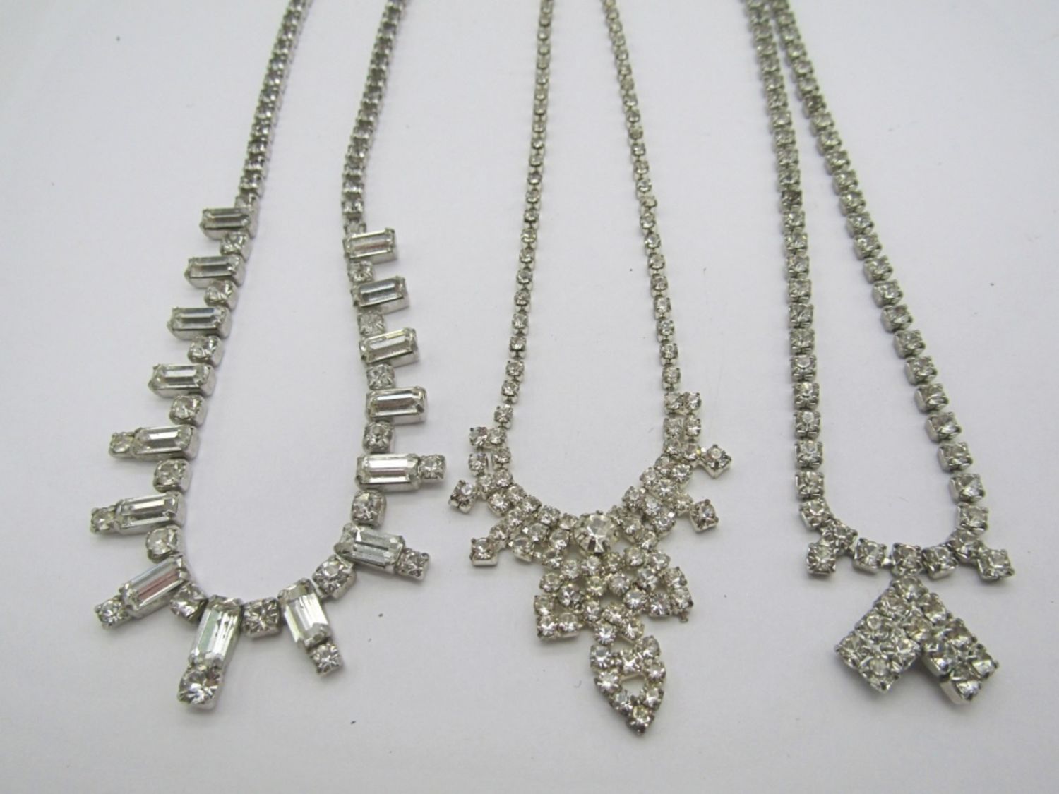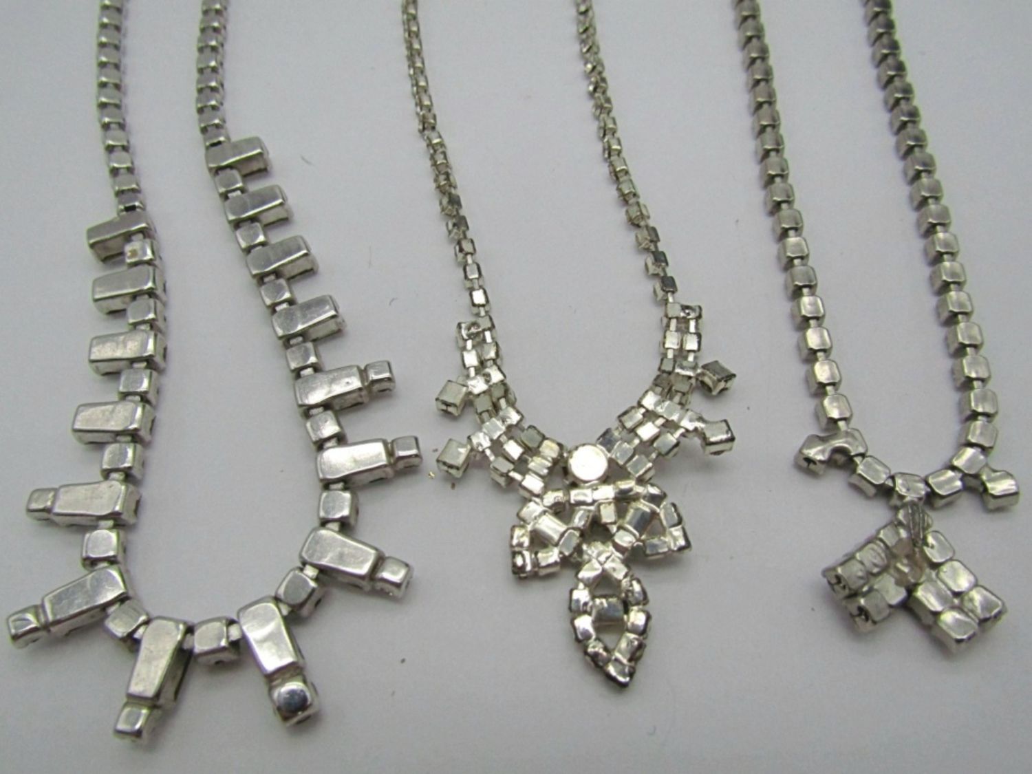 15″ plus (2) MORE VINTAGE RHINESTONE NECKLACES UNMARKED 14″ & 16″