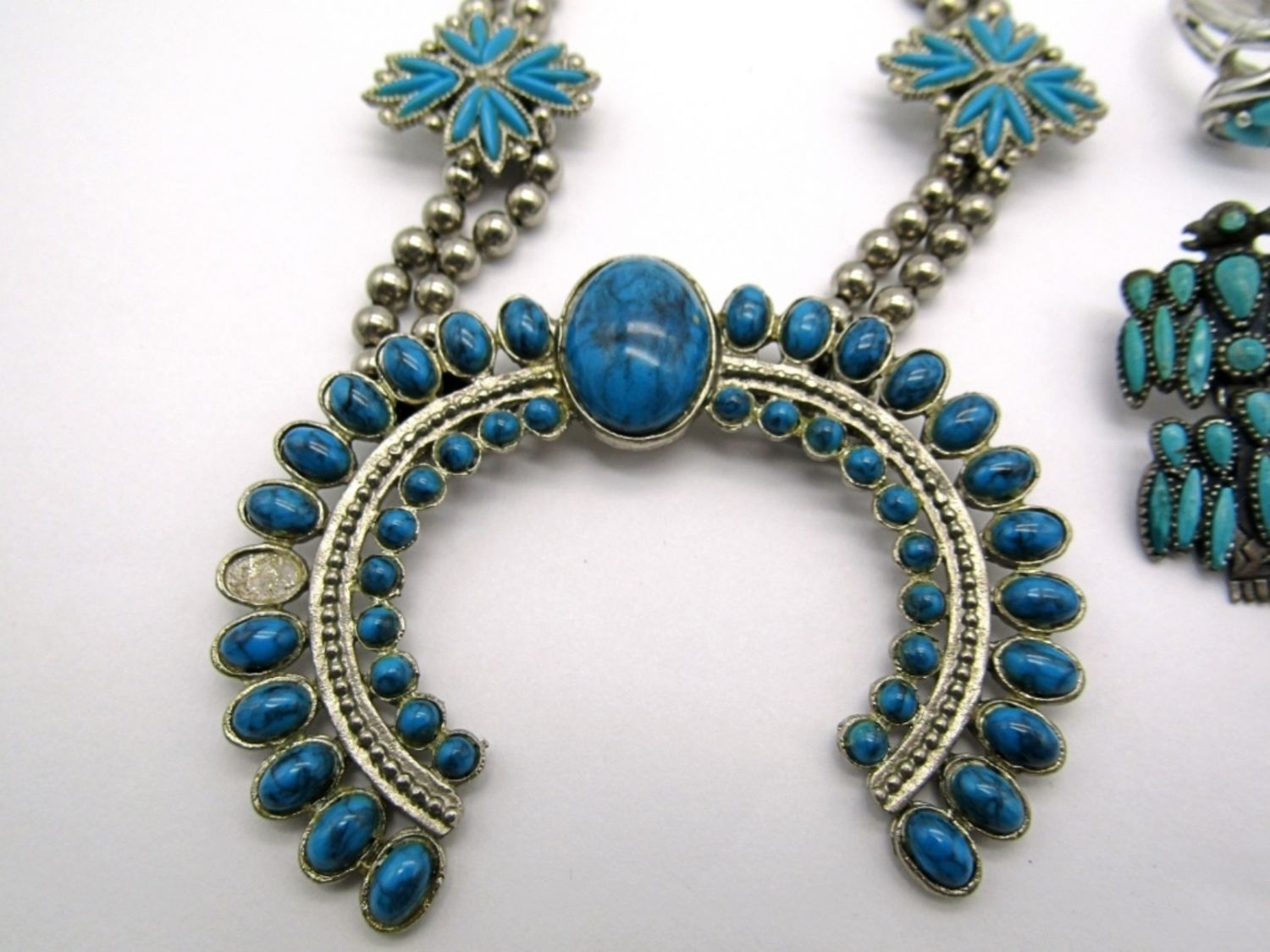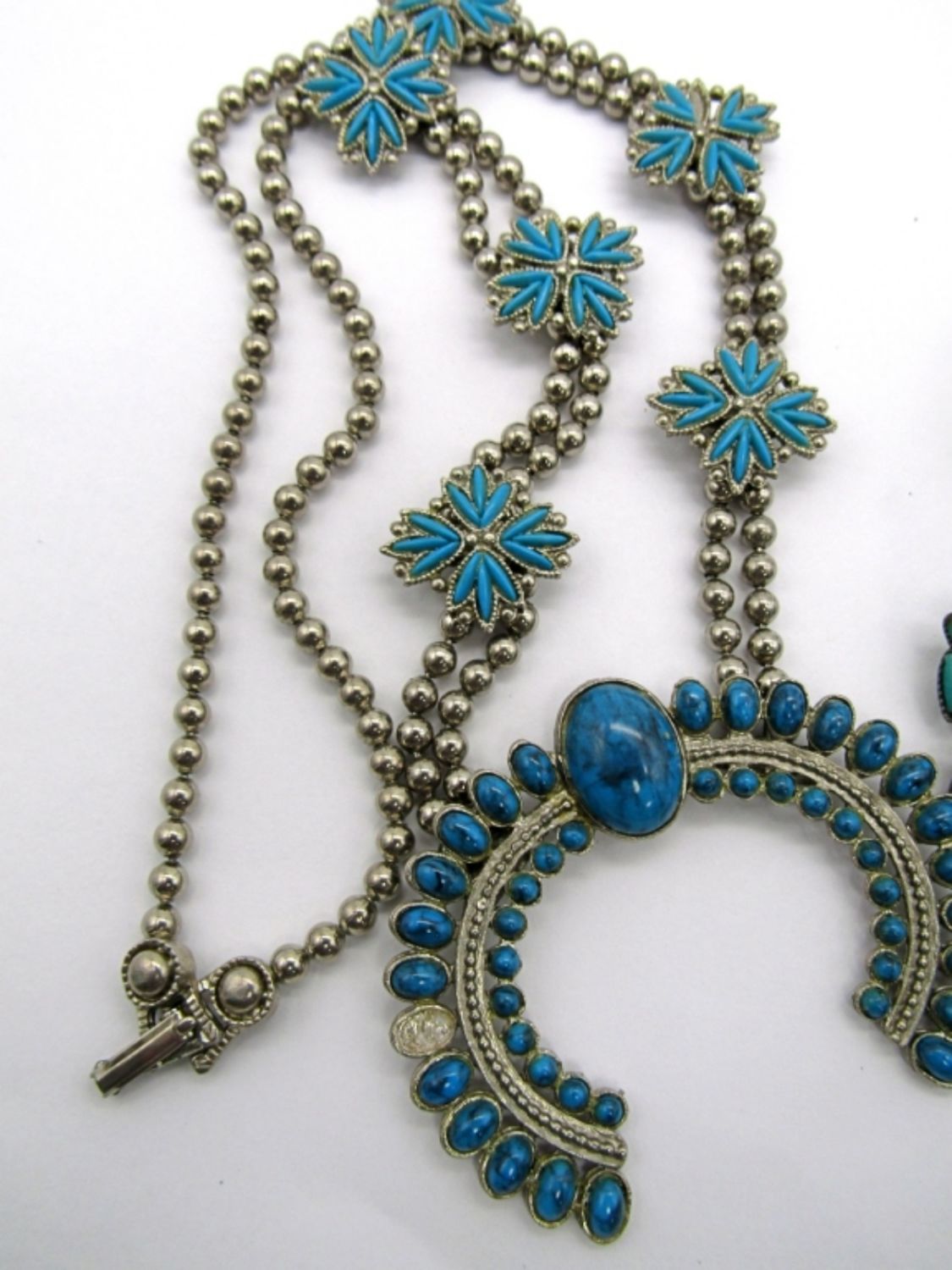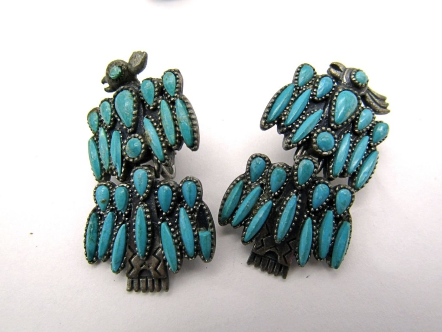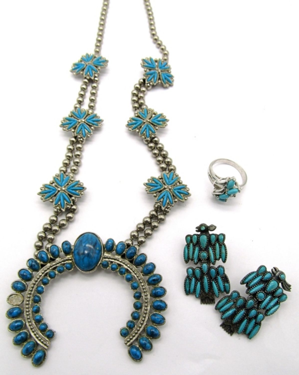 missing (1) FAUX TURQUOISE GEM plus VINTAGE CLIP ON ZUNI EARRINGS & MODERN SOUTHWEST RING SIZE 8
