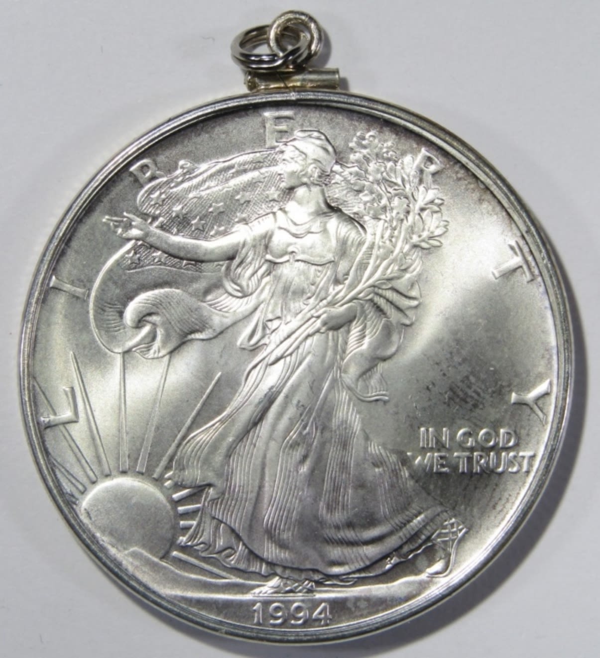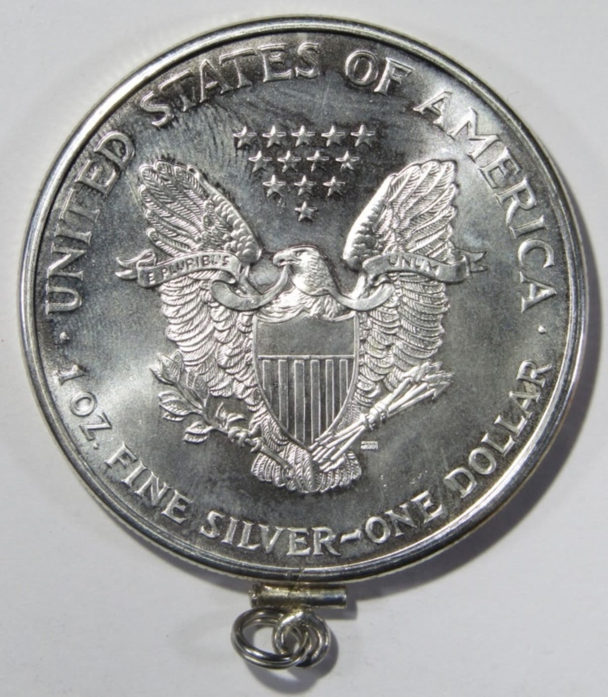 UNCIRCULATED SILVER EAGLE IN NECKLACE SETTING