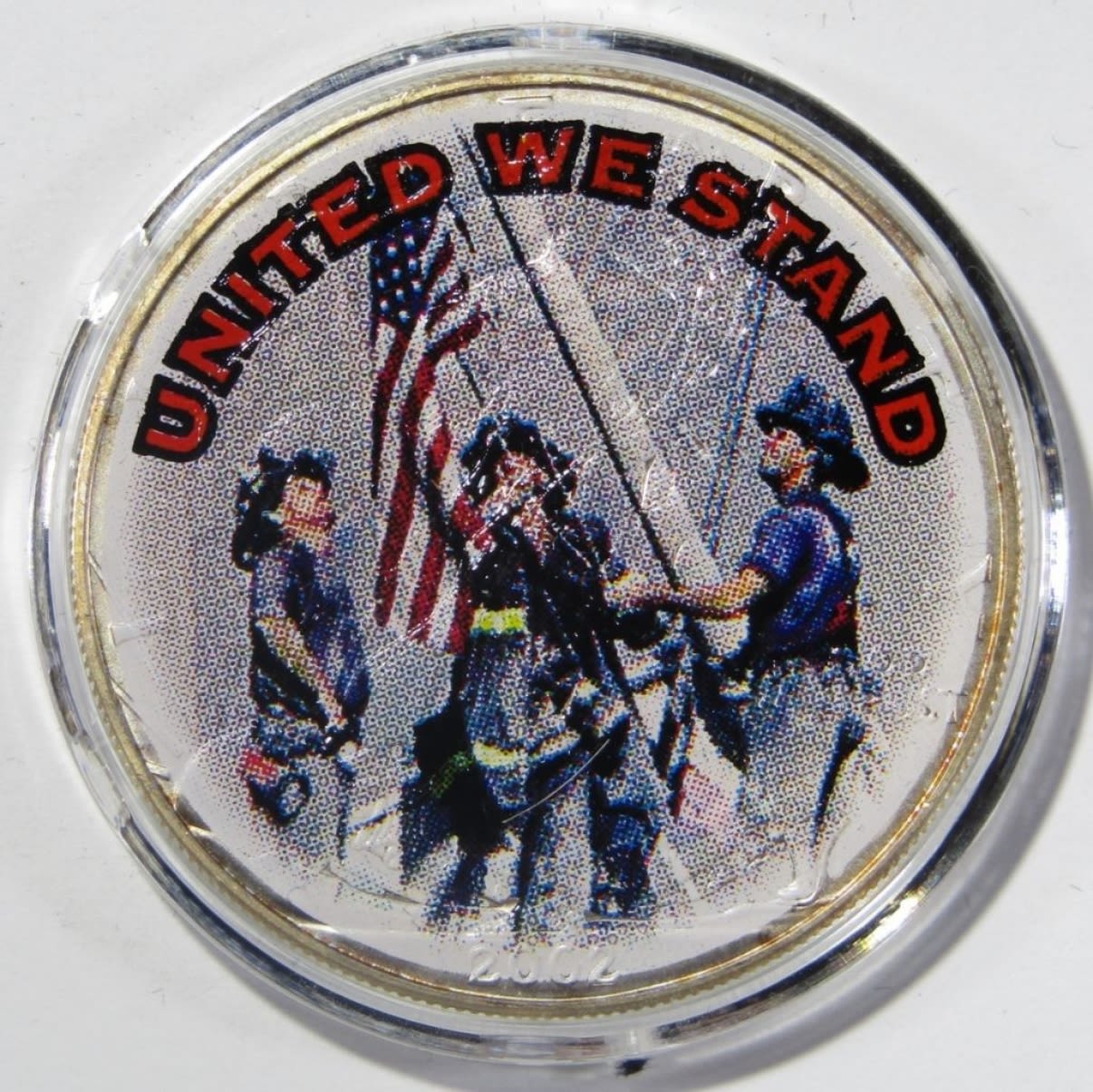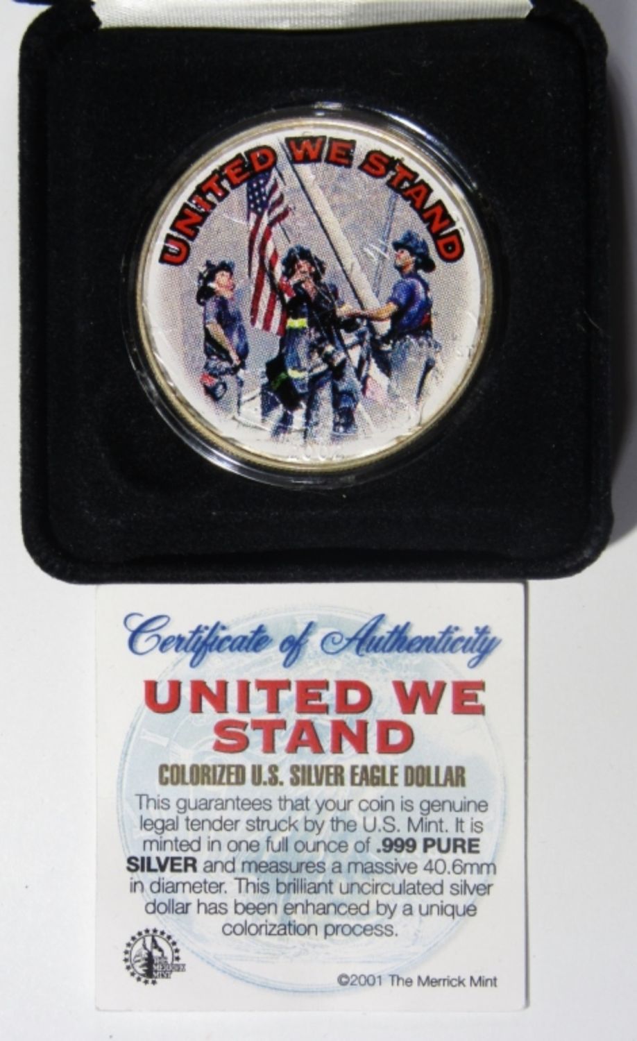 COLORIZED AMERICAN SILVER EAGLE IN VELVET DISPLAY BOX WITH COA.