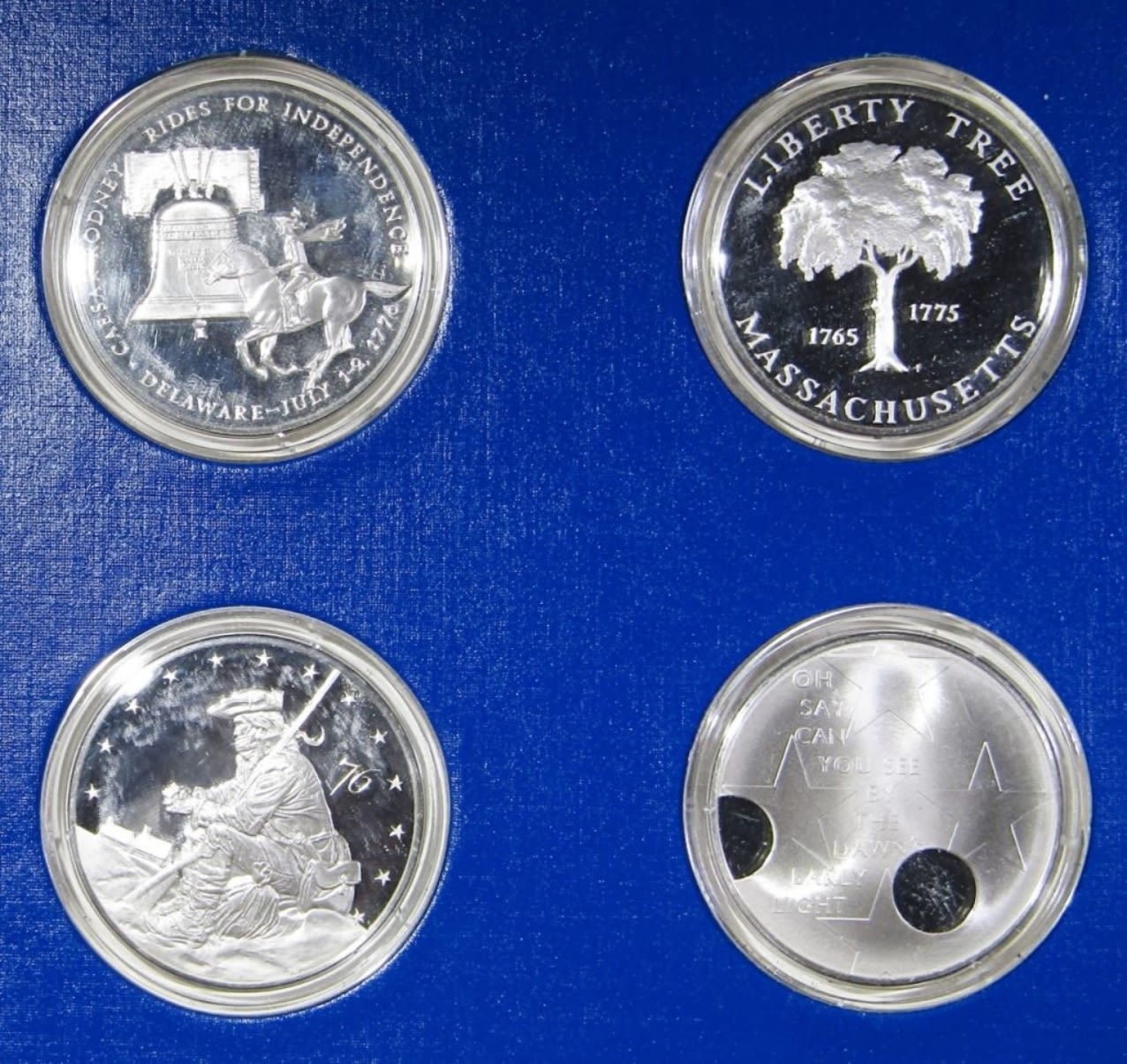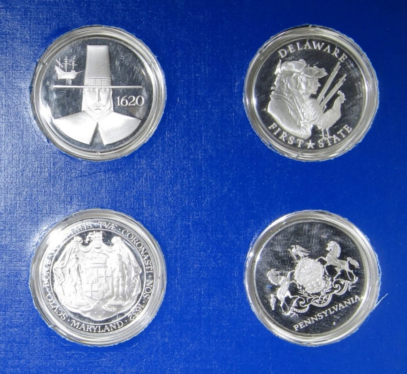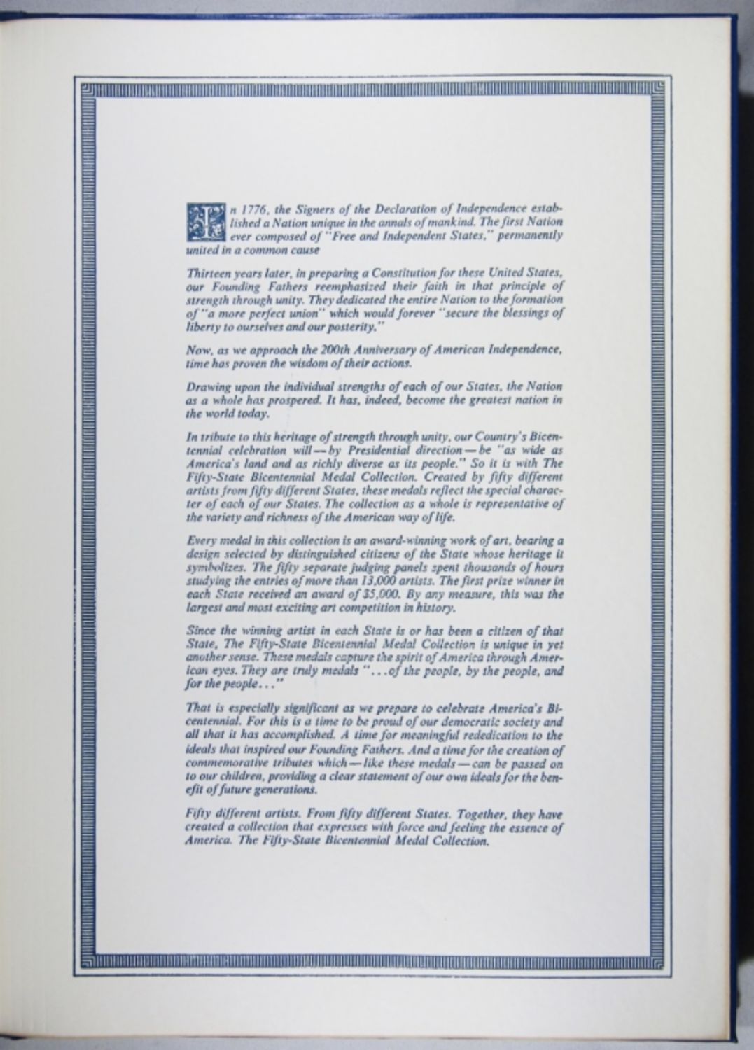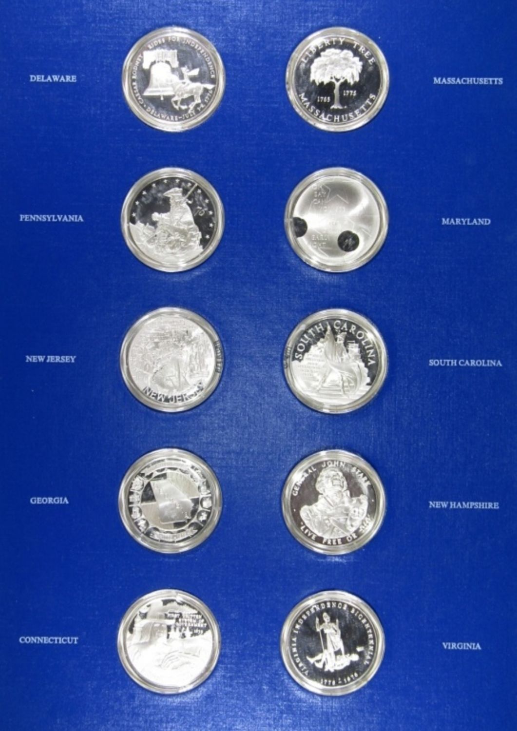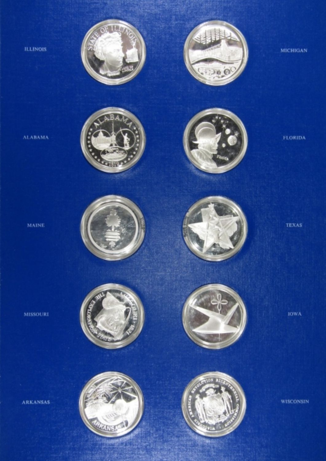 THE FIFTY-STATE BICENTENNIAL MEDAL COLLECTION. FIRST EDITION PROOF SET (50) SOLID SILVER STERLING COMMEMORATIVE STATE ROUNDS. 50oz .925 SILVER TOTAL, THE FRANKLIN MINT.