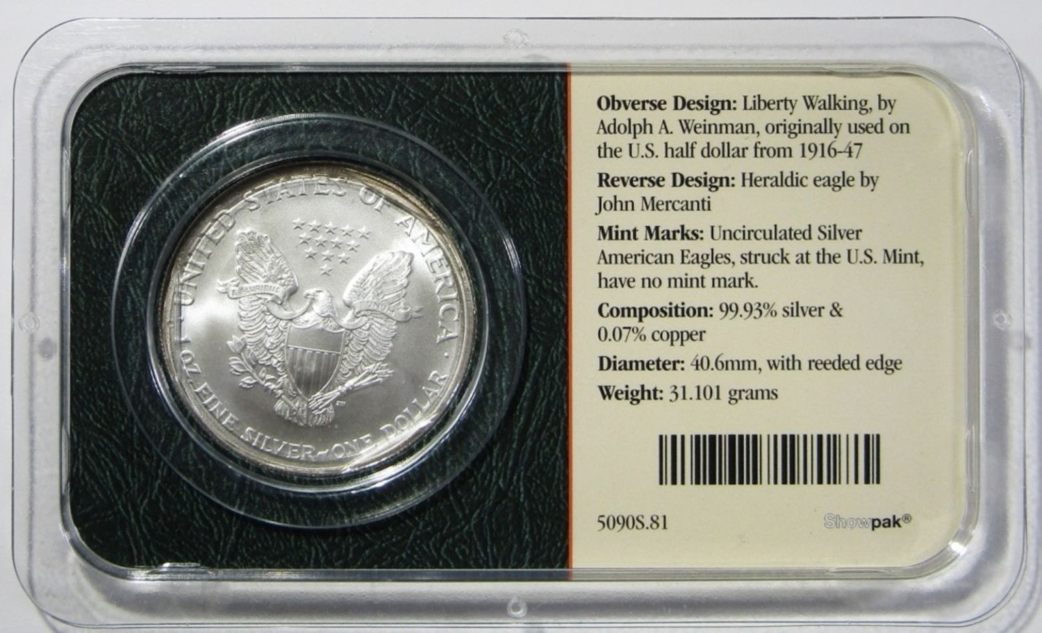 AMERICAN SILVER EAGLE 1ozt .999 PURE SILVER