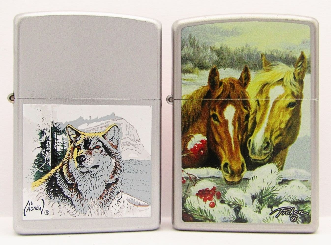 SEALED Zippo Lighters, Wolf – Al Agnew; Horses – Picker.