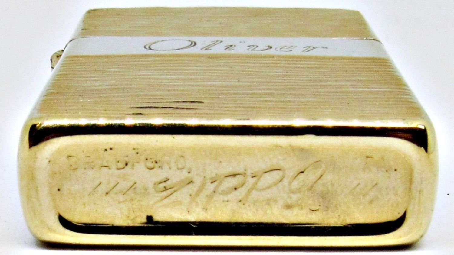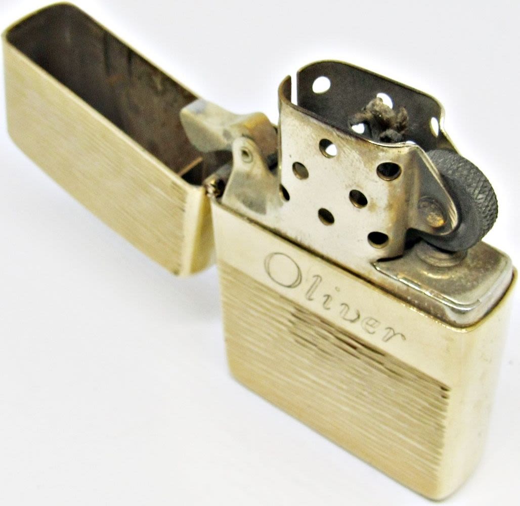 1976 BRASS TONE ZIPPO LIGHTER, ENGRAVED, UNIQUE ETCHED DESIGN, USED CONDITION