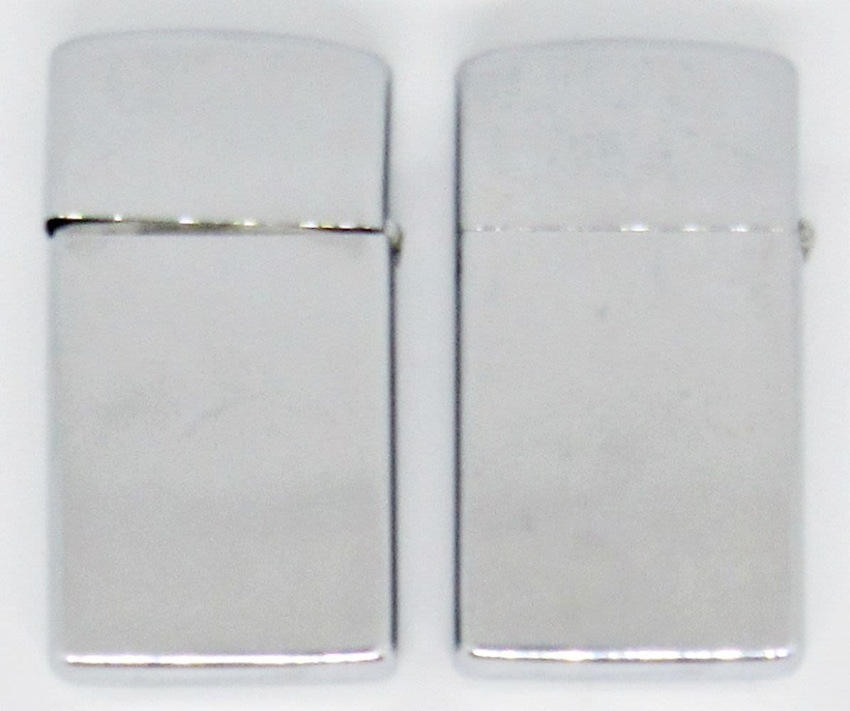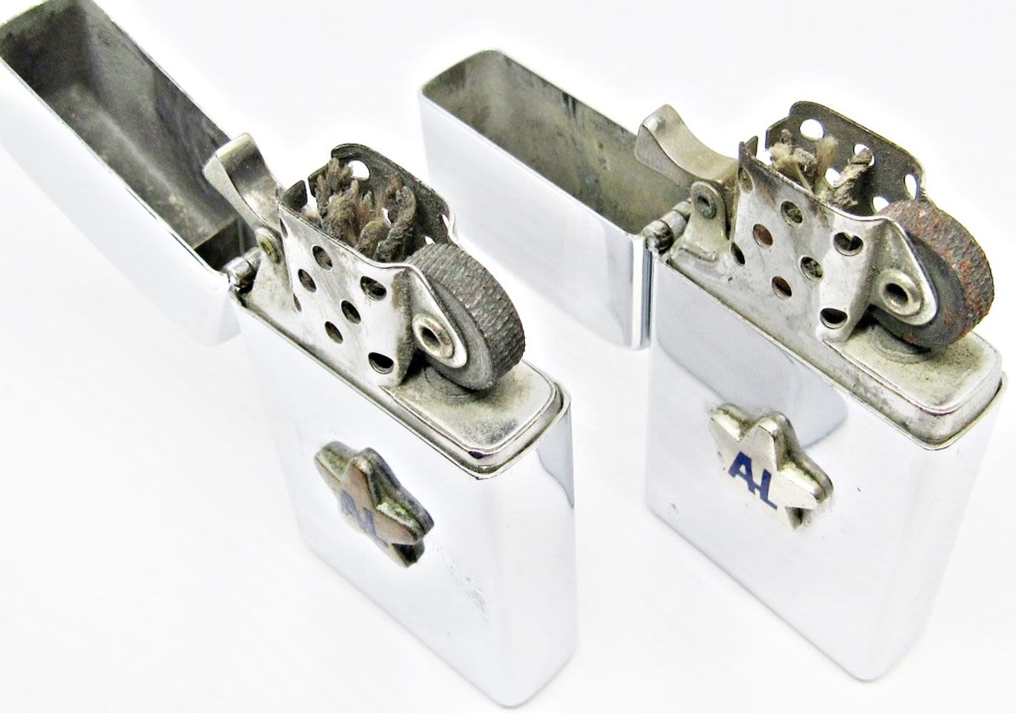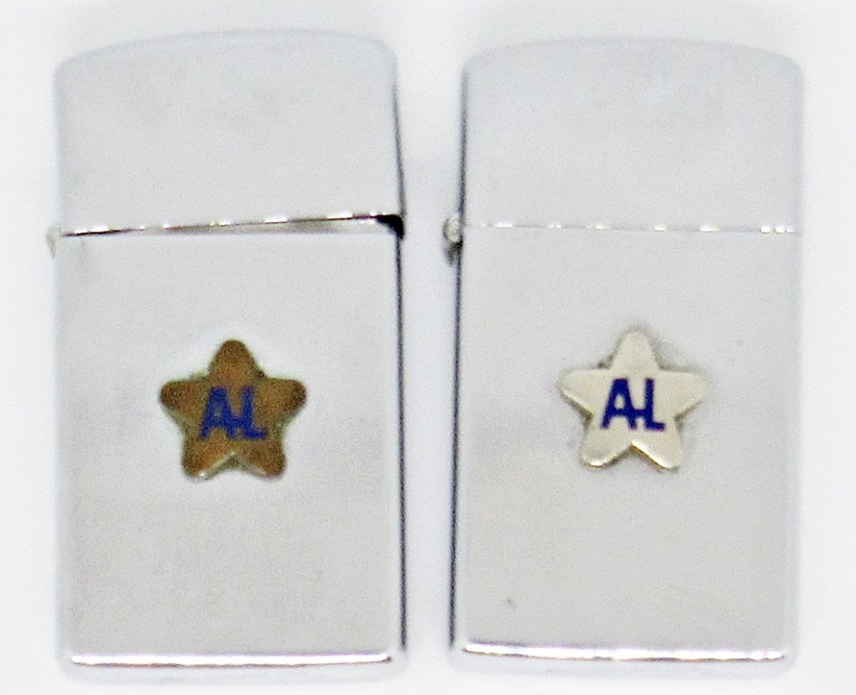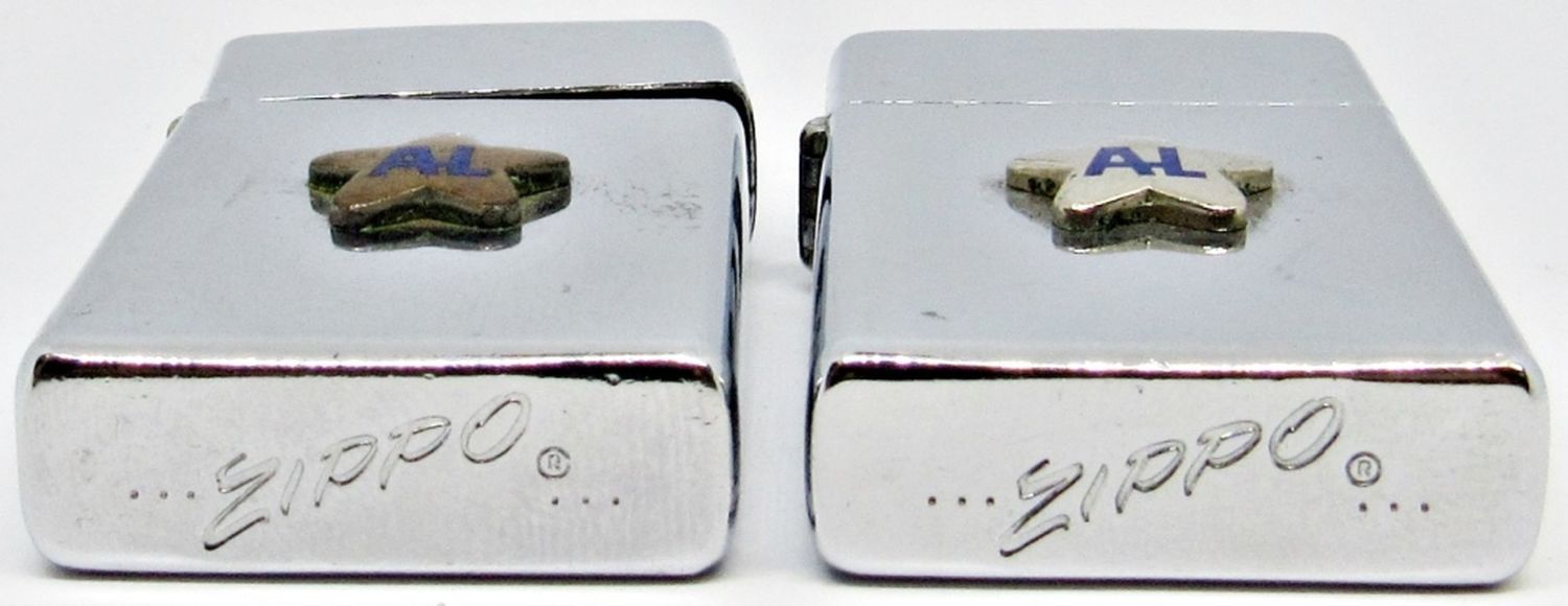 1960 SLIM STYLE CHROME SILVER TONE ZIPPO LIGHTERS, RAISED STAR EMBLEM WITH AL INITIALS; USED CONDITION