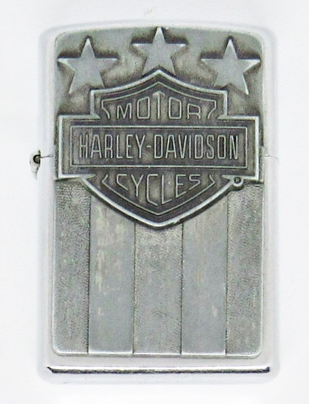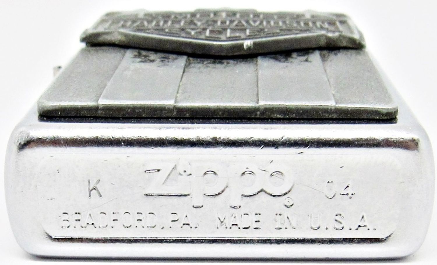 2004 HARLEY-DAVIDSON RAISED EMBLEM ZIPPO LIGHTER, SILVER TONE, ENGRAVED ON BACK; USED CONDITION