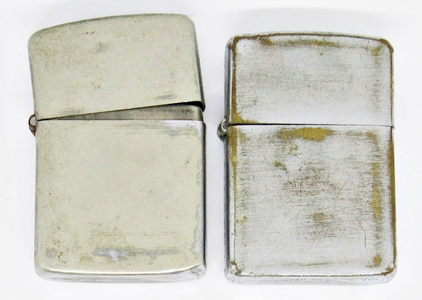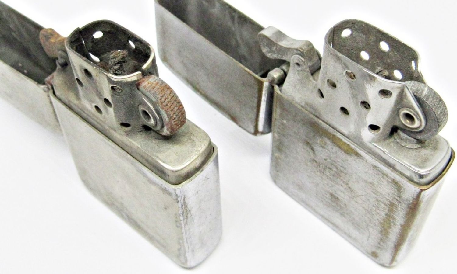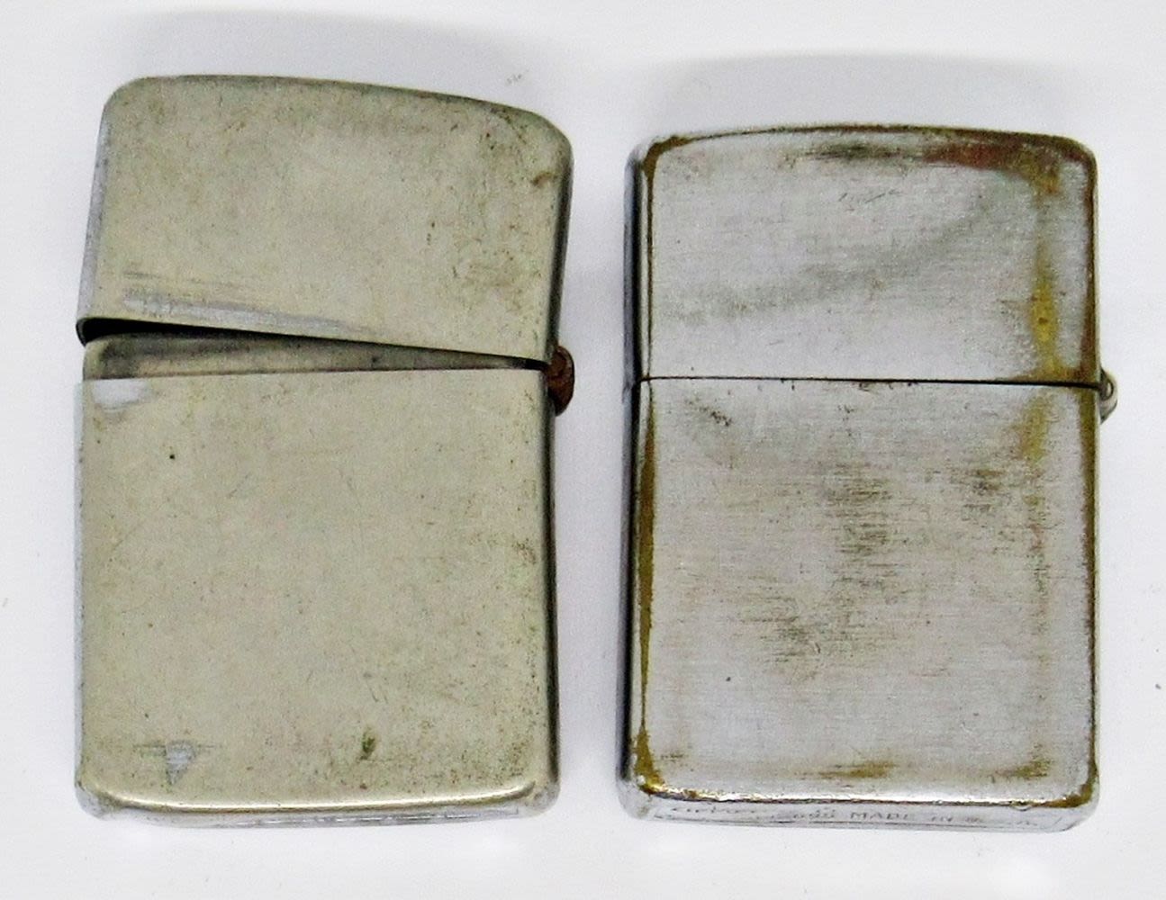 (2) ANTIQUE BRUSHED CHROME ZIPPO LIGHTERS; USED CONDITION