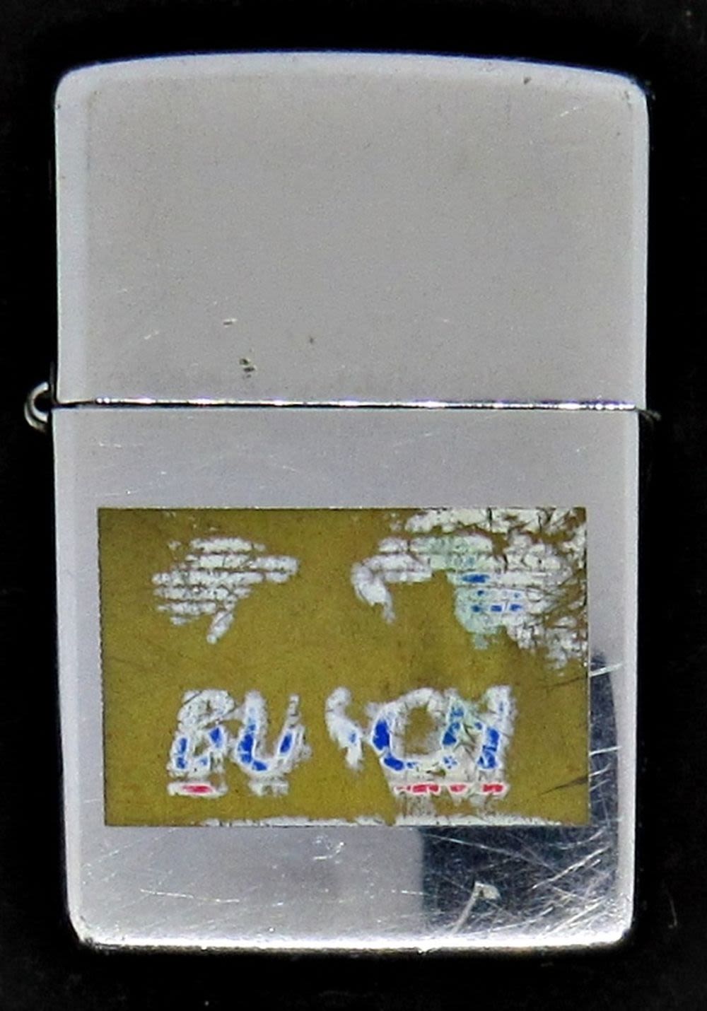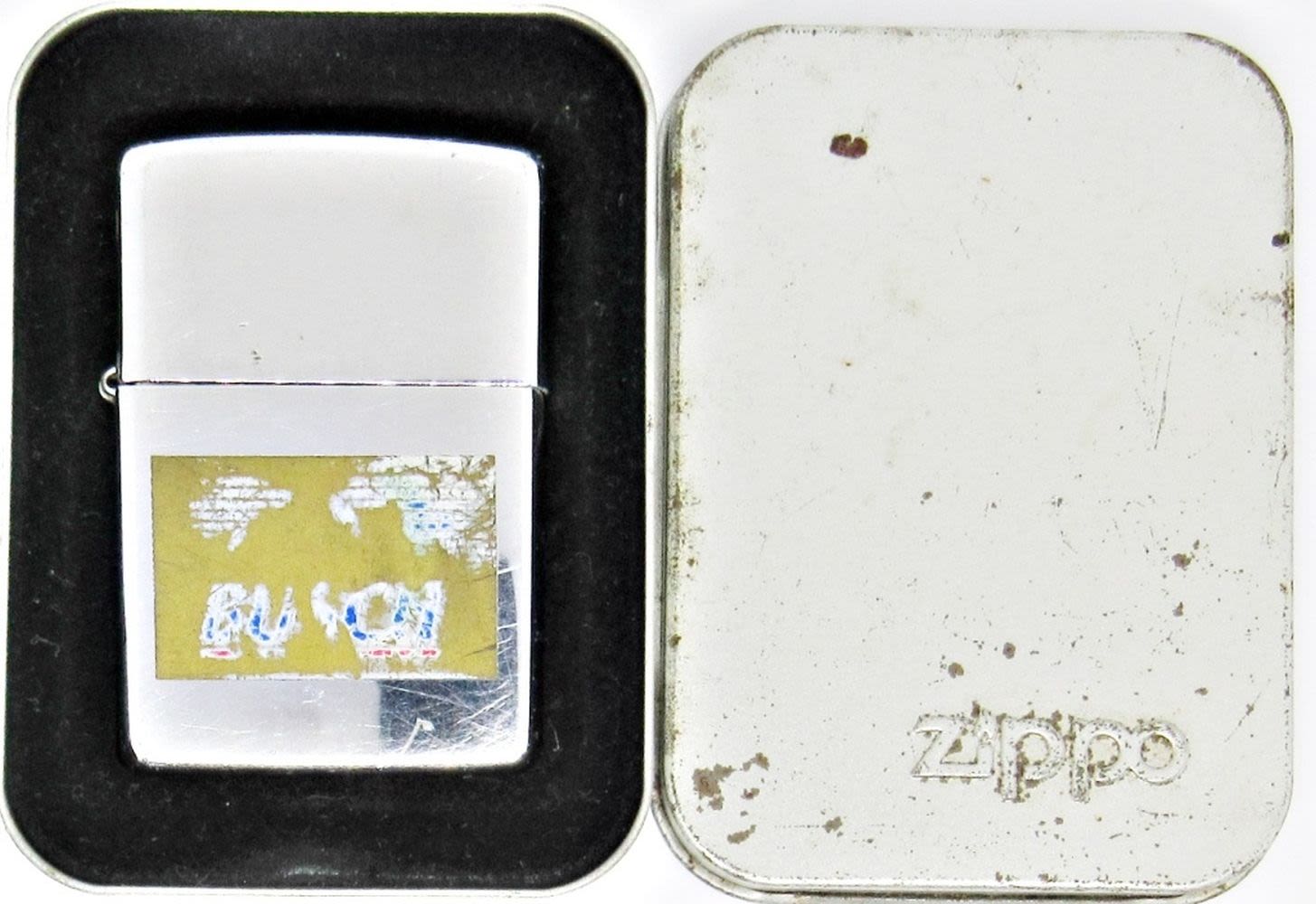 1994 ZIPPO LIGHTER WITH BUSCH ENGRAVED LOGO FADED; USED CONDITION; IN ORIGINAL TIN