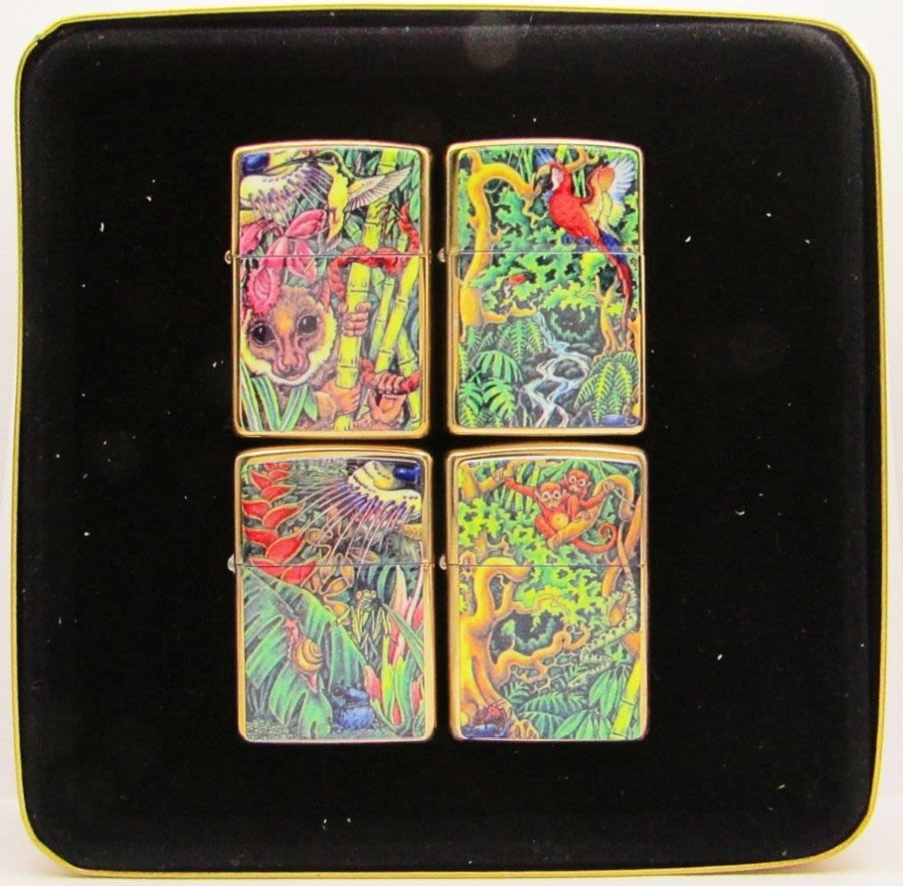 MINT Solid Brass 4 Zippo Lighters SEALED! In Collectors Tin!