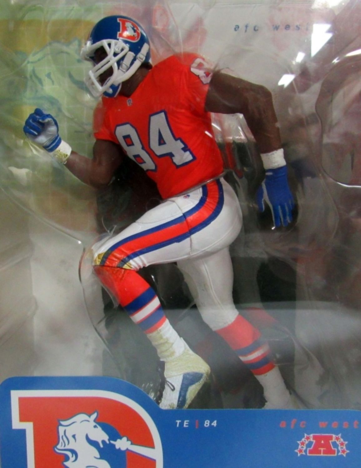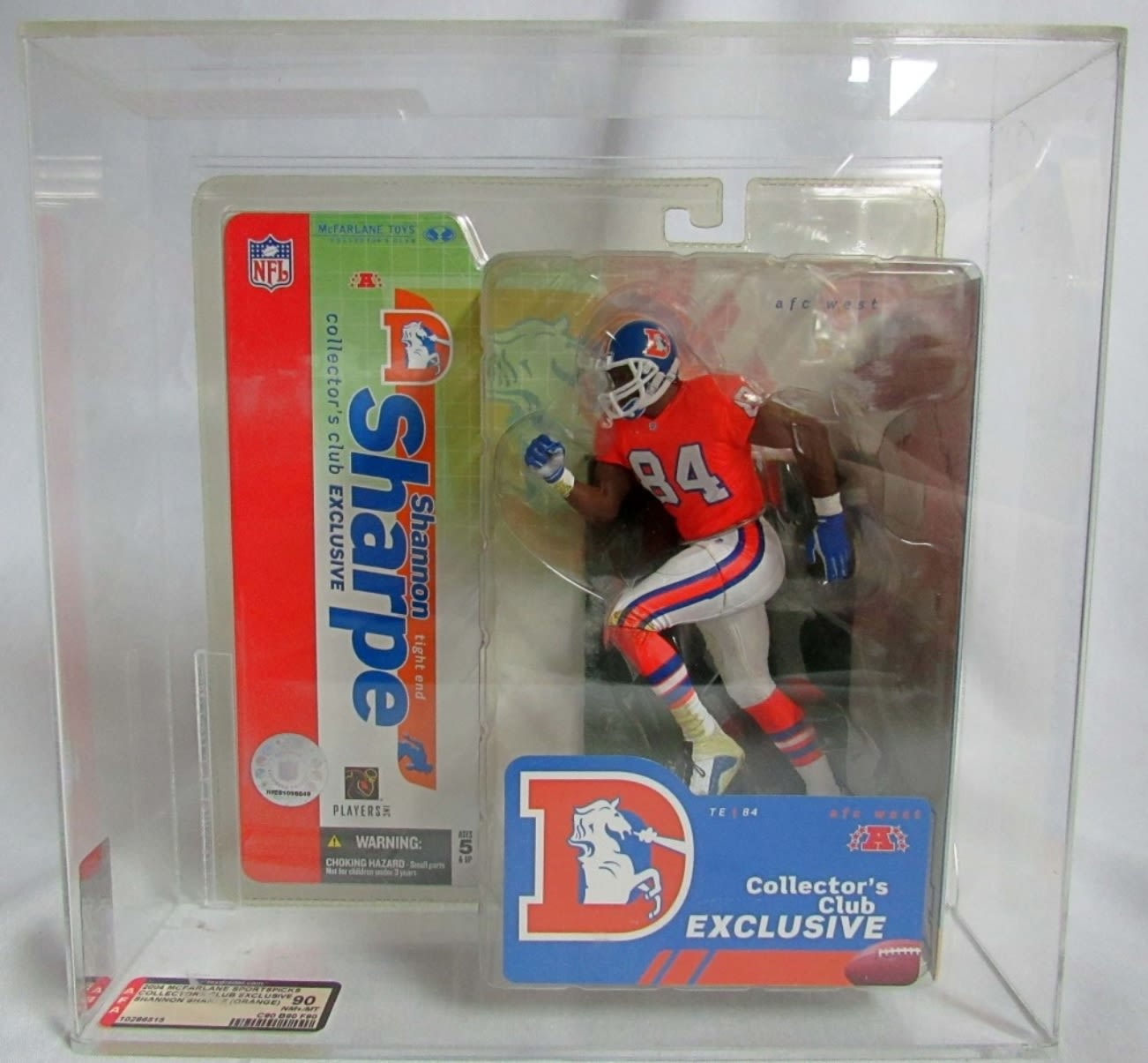 2004 MCFARLANE COLLECTORS CULB EXCLUSIVE SHANNON SHARPE DENVER BRONCOS, IN THE ORANGE JERSEY, IN DISPLAY CASE