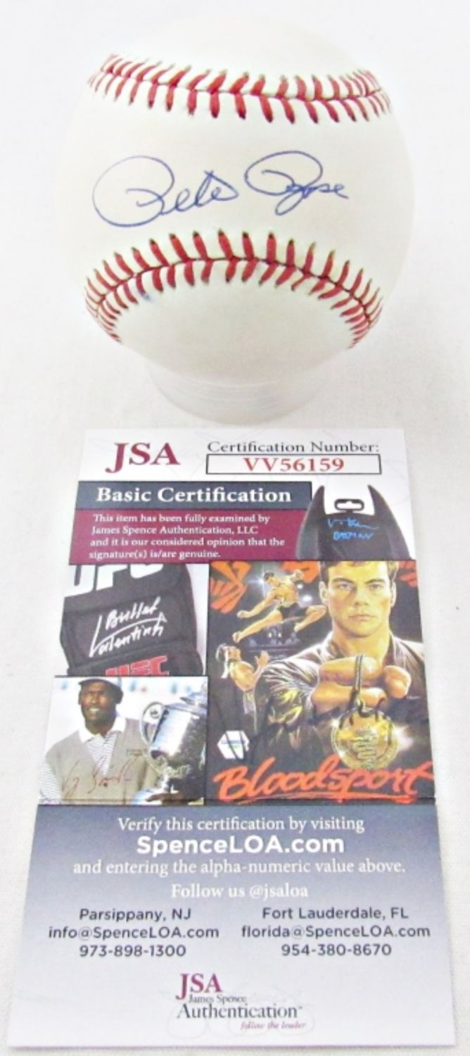 PETE ROSE AUTOGRAPHED BASEBALL WITH COA IN DISPLAY CASE; INCLUDES COA