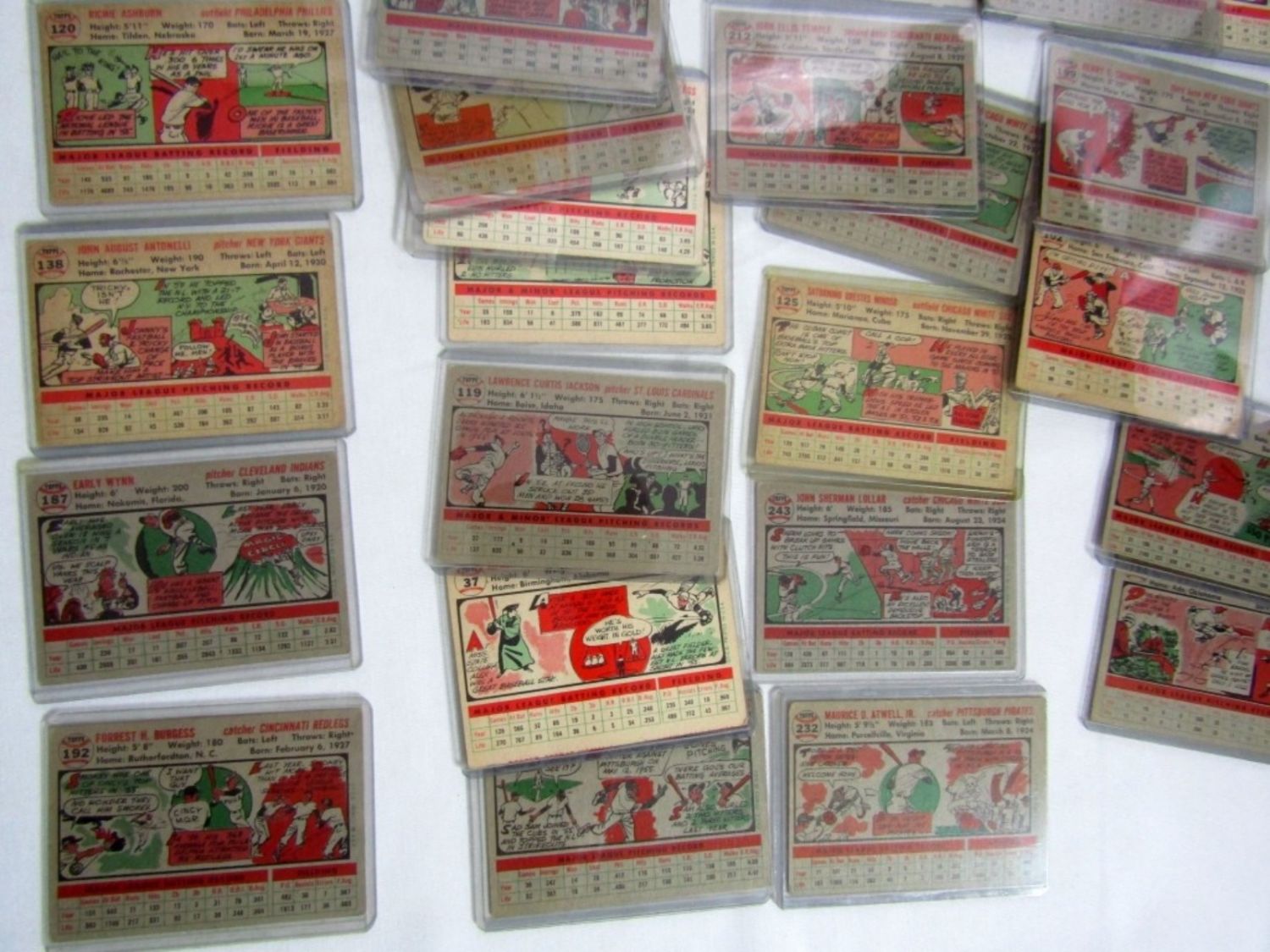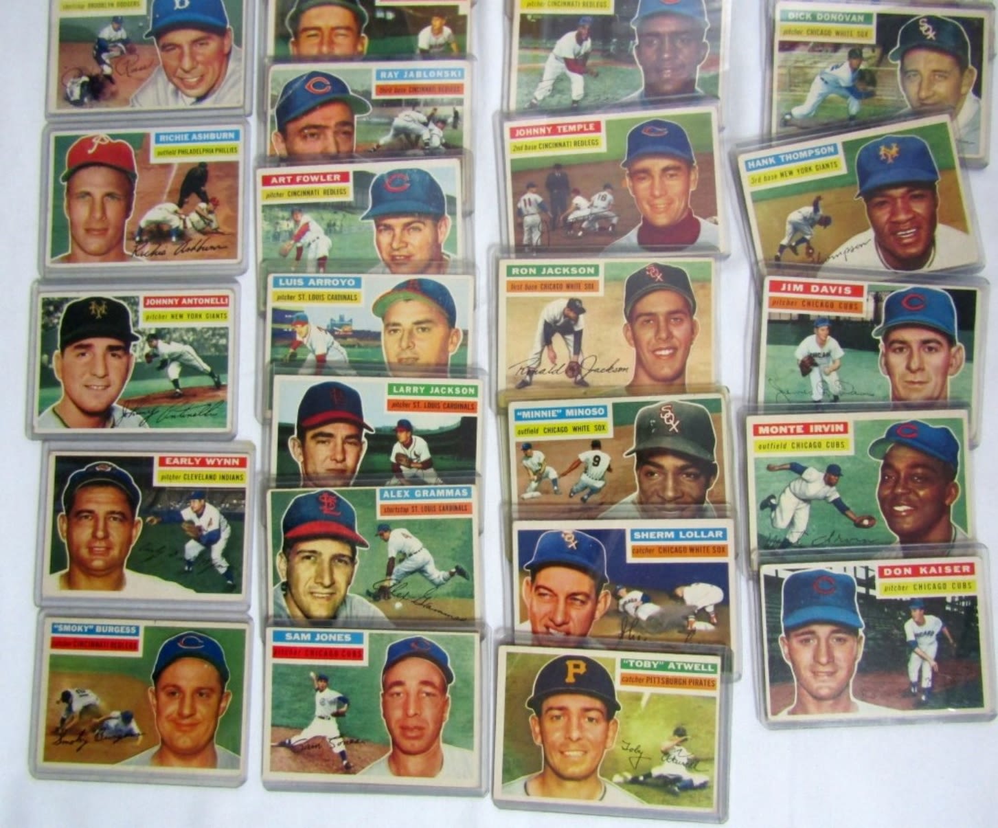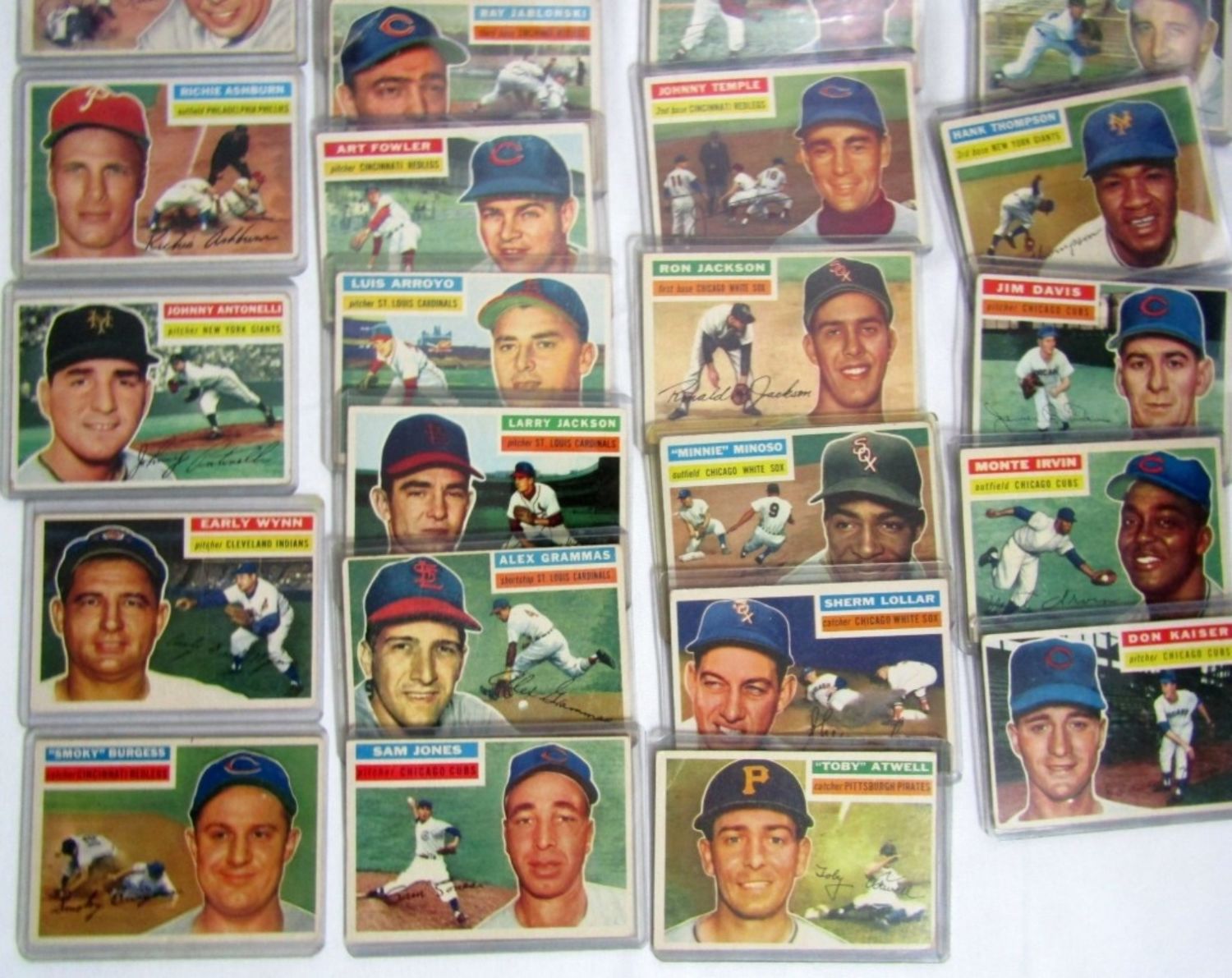 (38) includes #113 RIZZUTO VGEX, #260 PEE WEE REESE VGEX, #120 ASHBURN, #138 ANTONELLI, #187 WYNN, #192 BURGESS, #199 THOMPSON, #307 WILHELM plus 30 1956 TOPPS BASEBALL CARDS – AVG VGEX / VG some BETTER / LESSER – ALL
