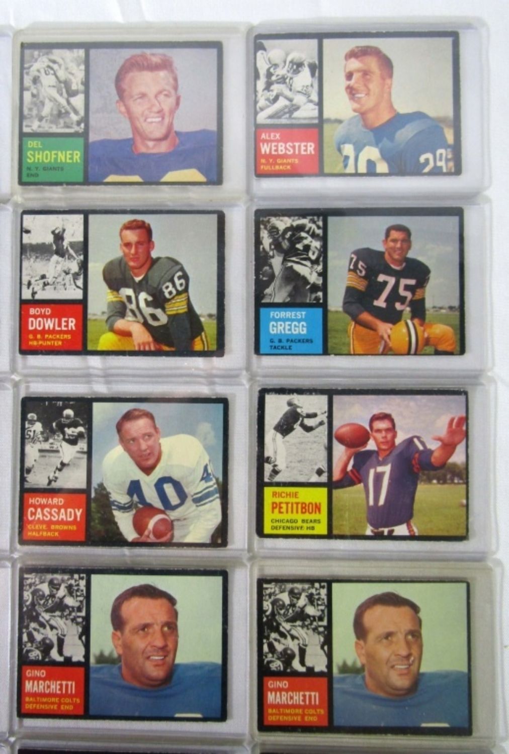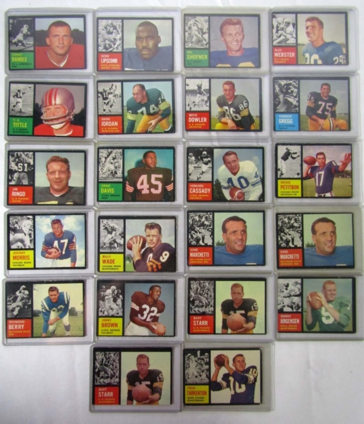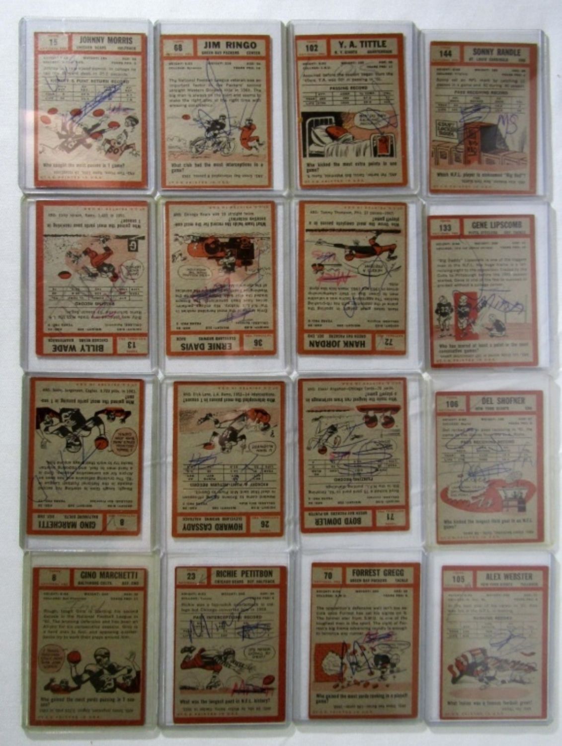 ALL HAVE INK on REVERSE – STARS included #5 BERRY, (2) #8 #13, #15, #23, #26, #28 BROWN, #36, (2) #63 STARR, #68, #70, #71, #72, #90 TARKENTON, #102, #105, #106, #115 JURGENSEN, #133, #144