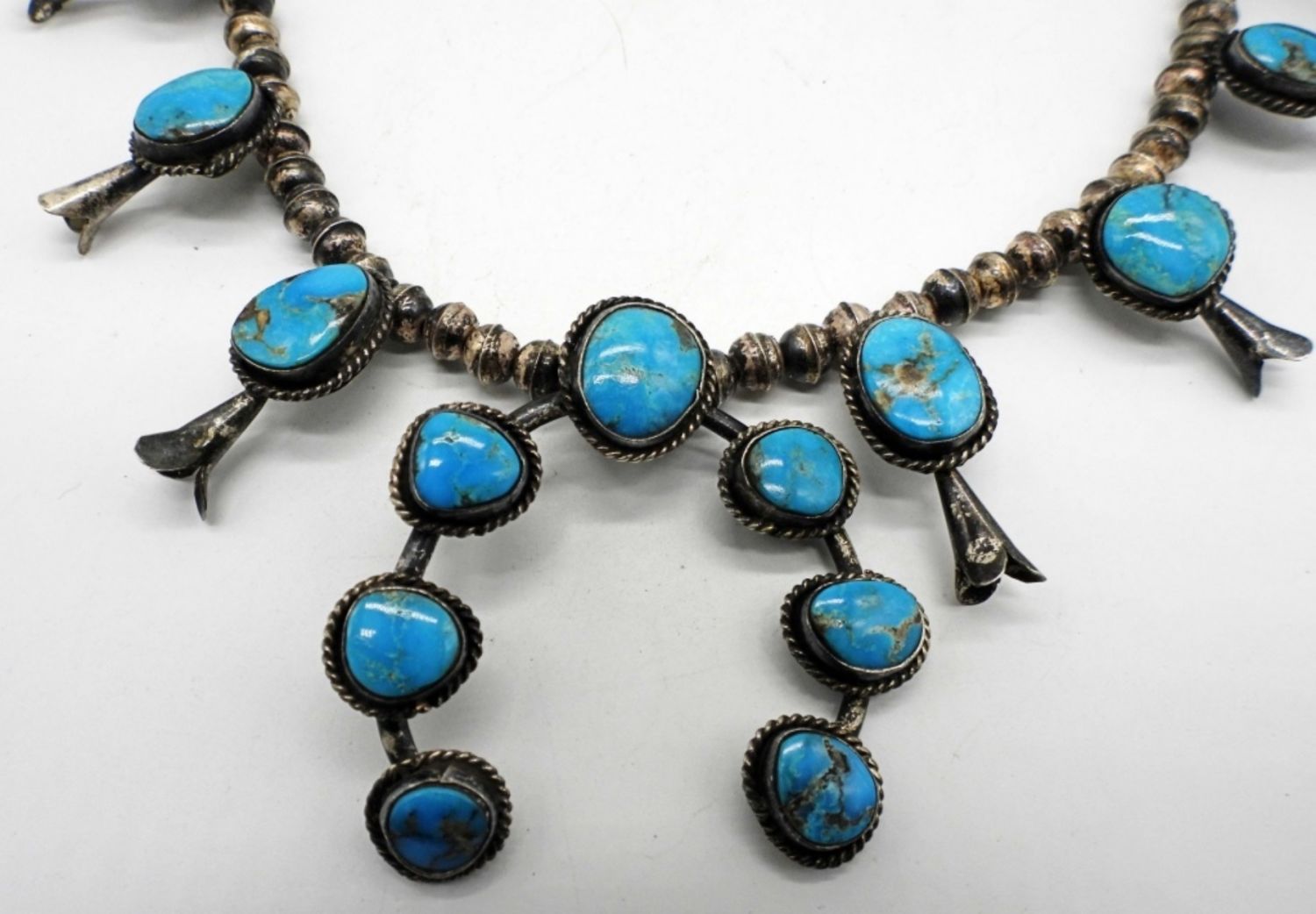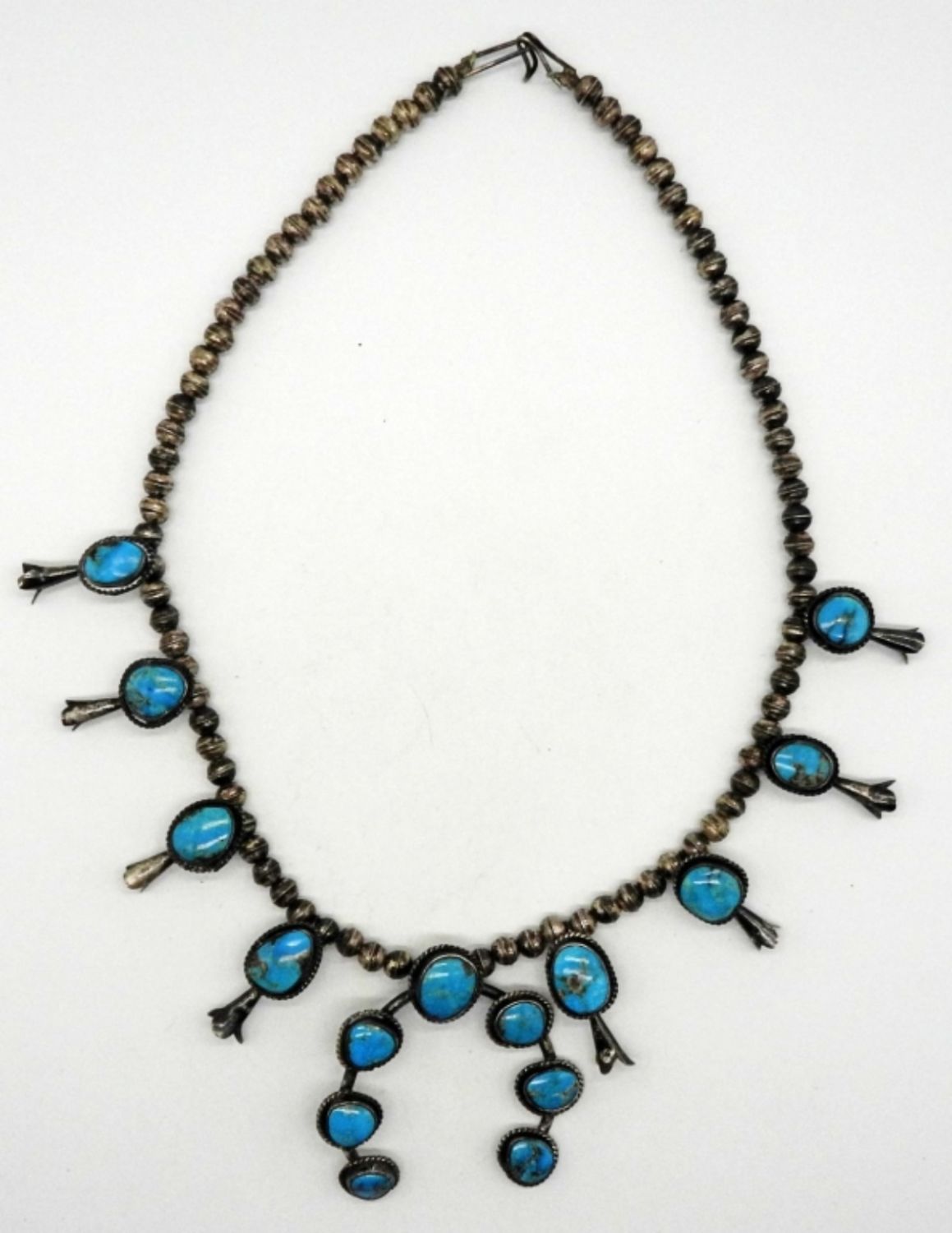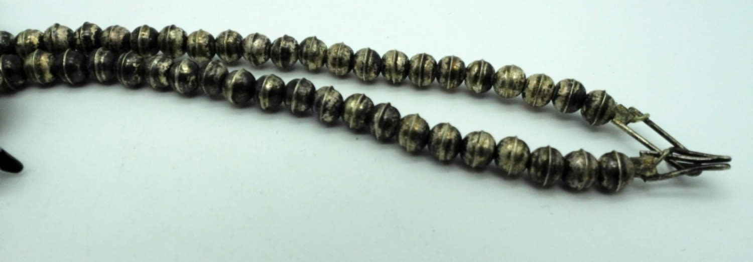 32DWT, 19 1/2in length, STERLING BEADS ALONG WITH TURQUOISE STONES, FESTOON STYLE, HOOK CLASP,