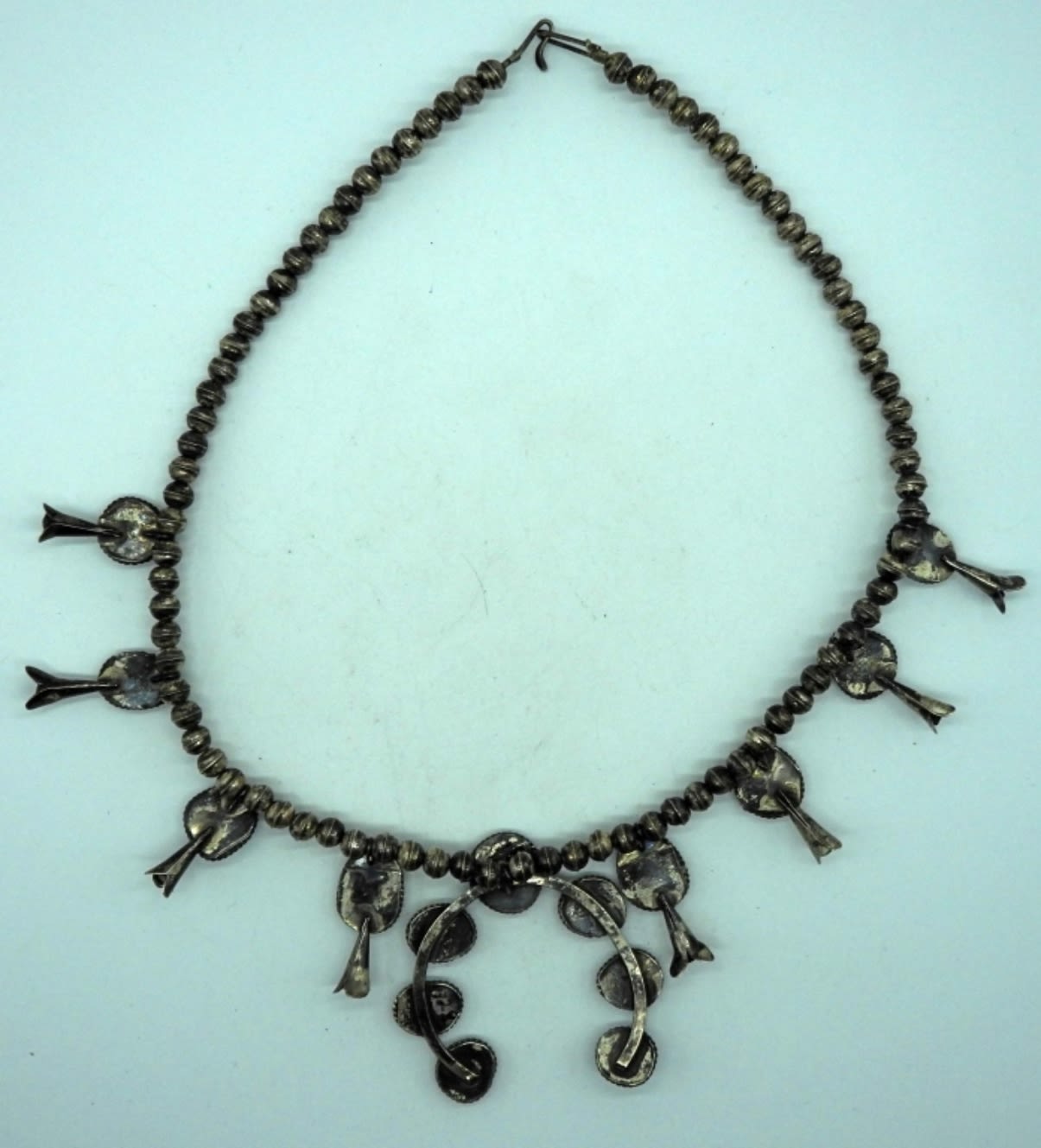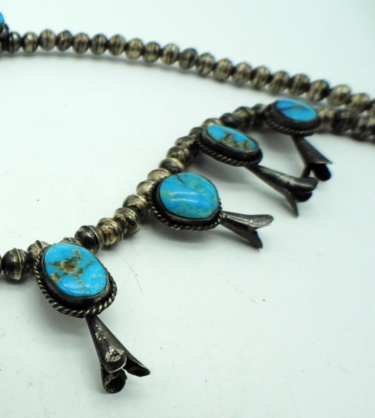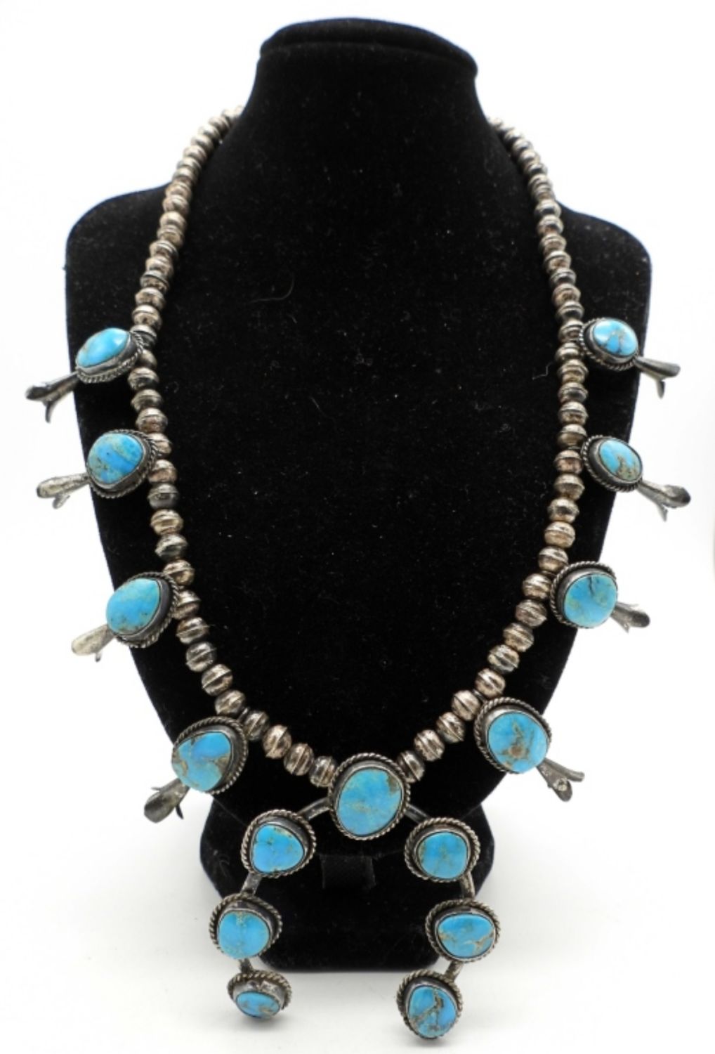 32DWT, 19 1/2in length, STERLING BEADS ALONG WITH TURQUOISE STONES, FESTOON STYLE, HOOK CLASP,