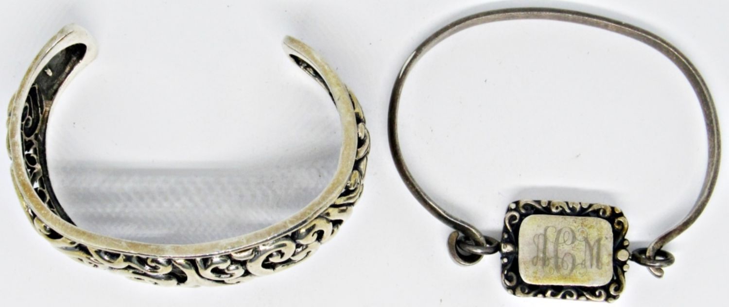 ORNATE STERLING SILVER; 1 CUFF STYLE; 1 SQUEEZE HINGE STYLE (40 dwt)