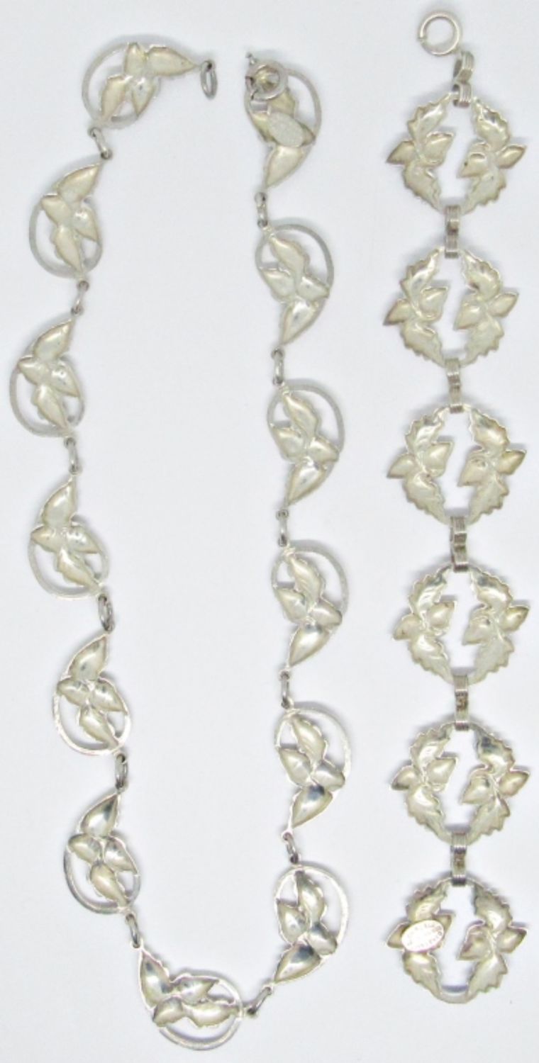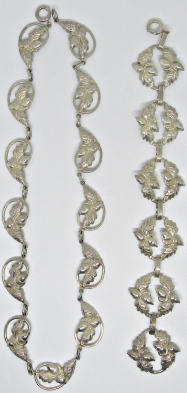 LEAF AND ACORN DESIGN, MARKED STERLING 15″ NECKLACE & 7″ BRACELET (26 DWT)