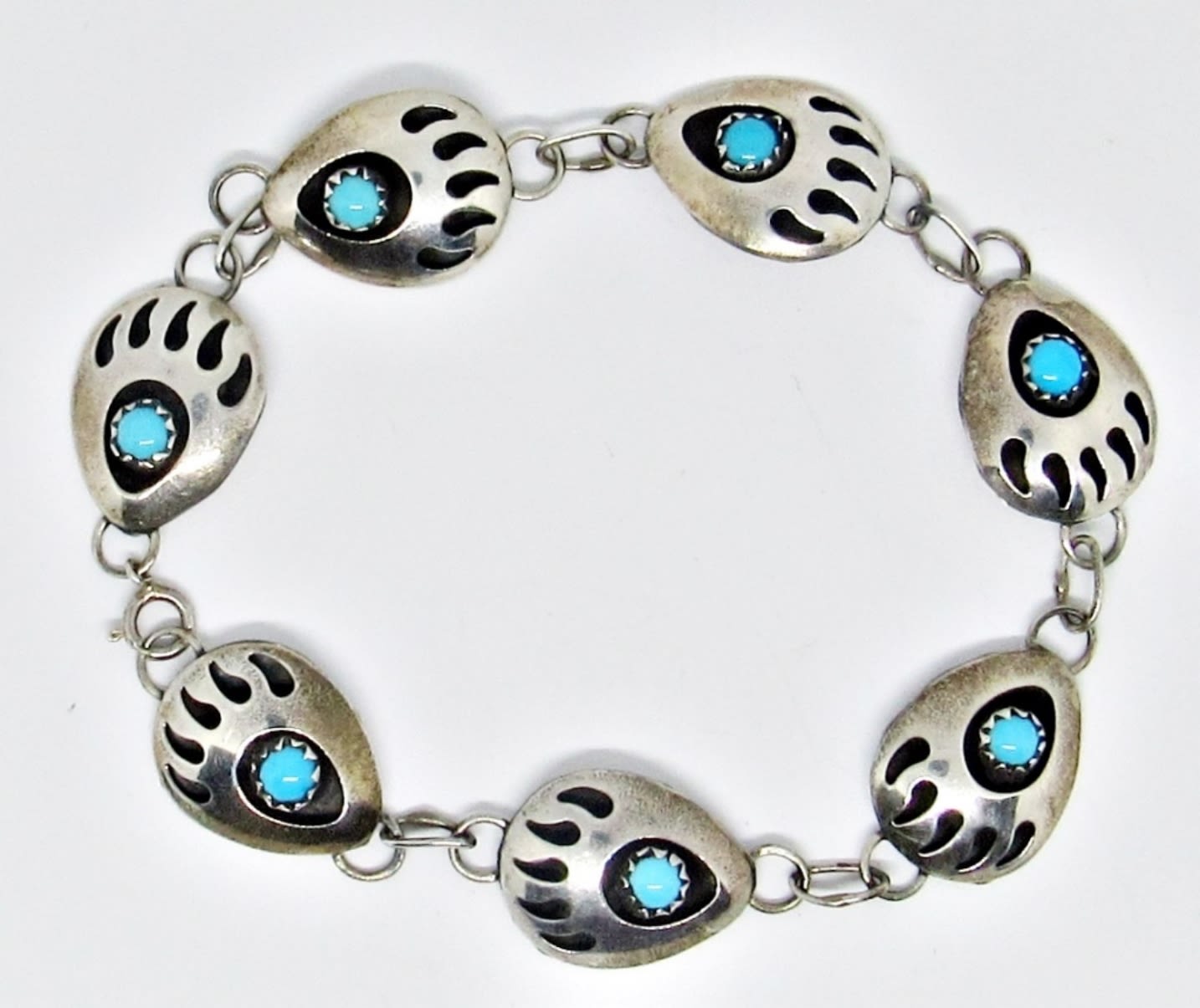 CHAIN STYLE BEAR PAW TURQUIOSE STONE CENTERS 7″ with no latch to open ( 4 DWT)