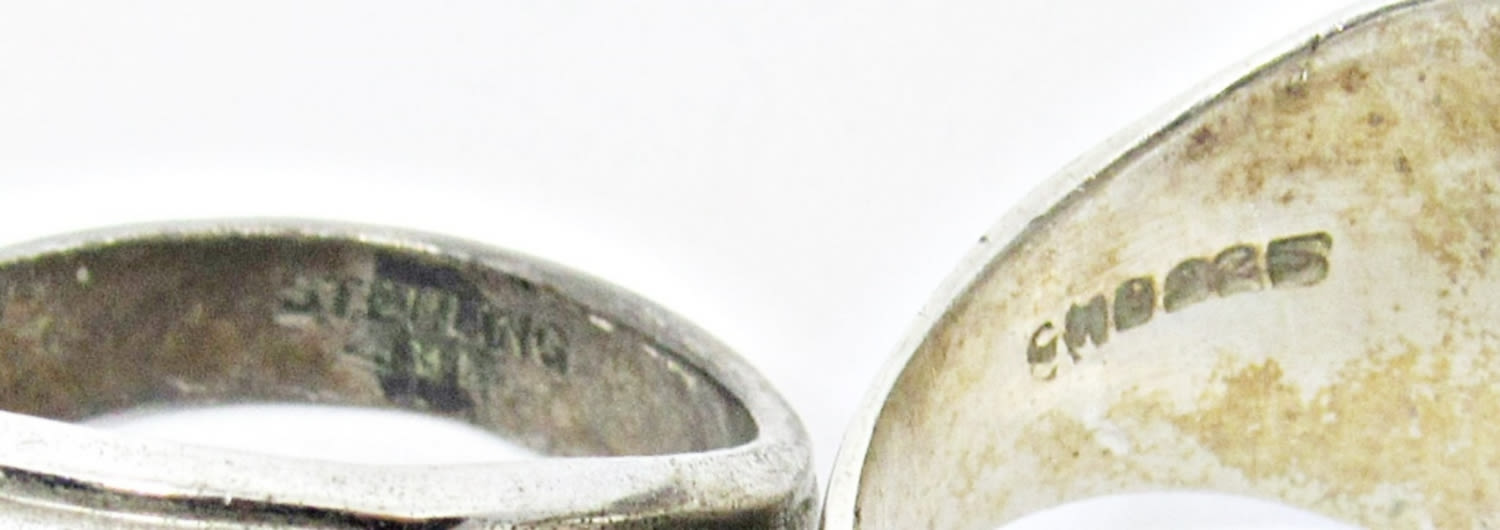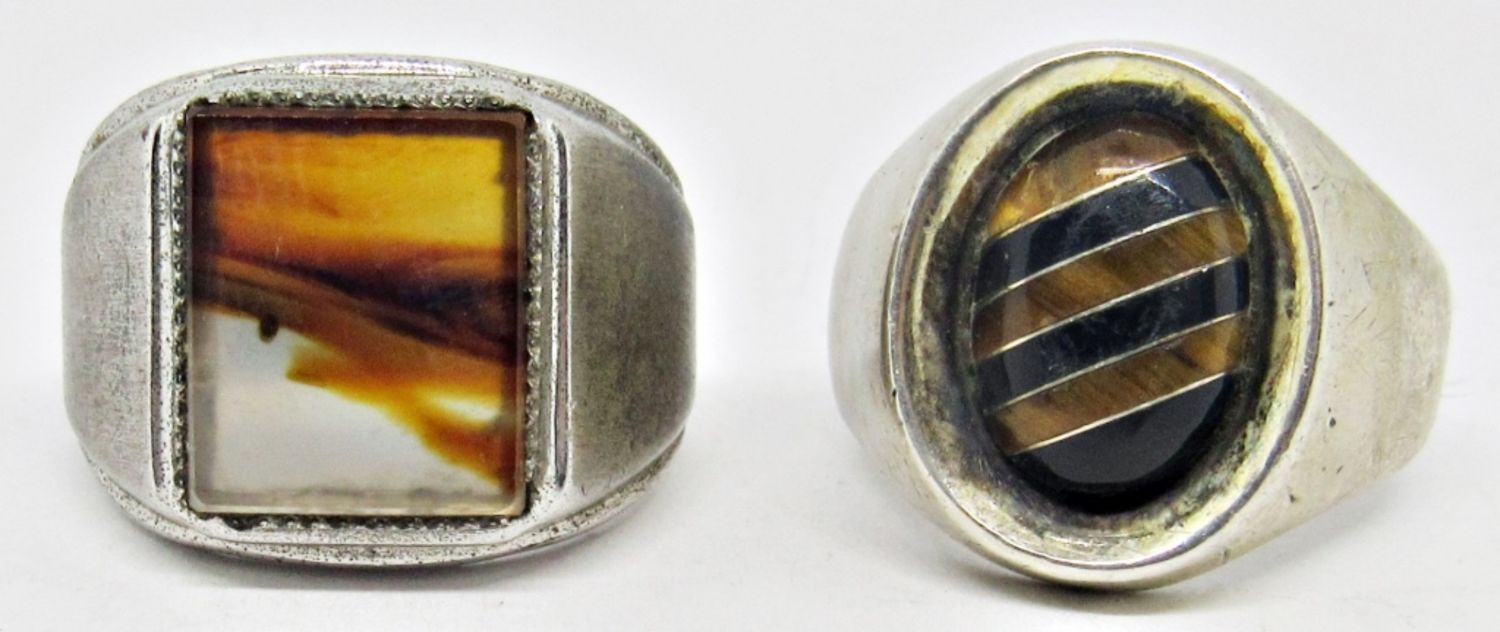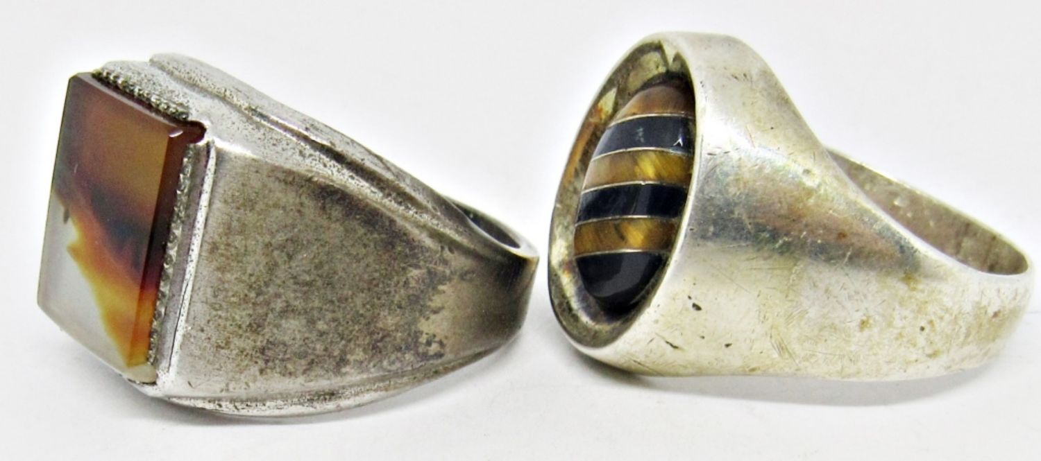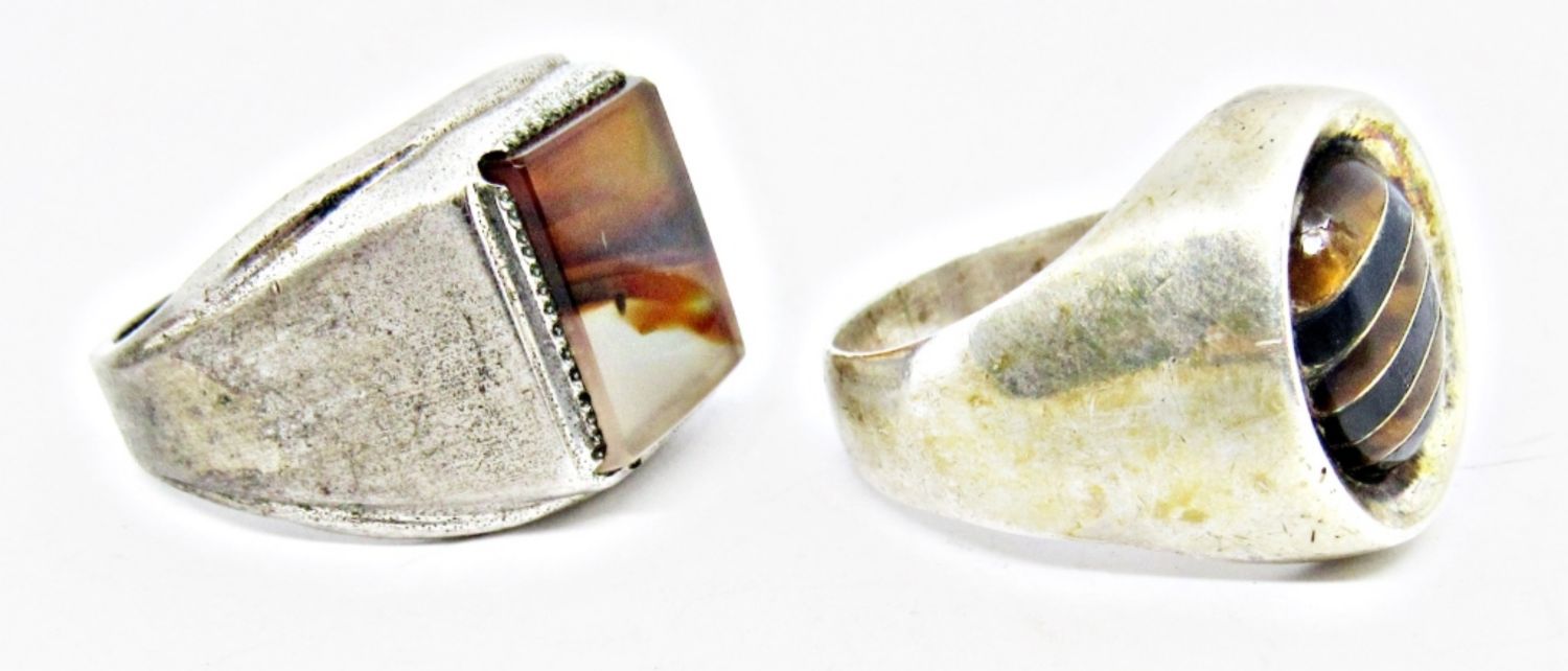 TM-58 STAMPED with STRIPED INLAY STONES SIZE 12 & UNCAS STAMPED with AMBER LIKE STONE SIZE 11.5 (20 DWT)