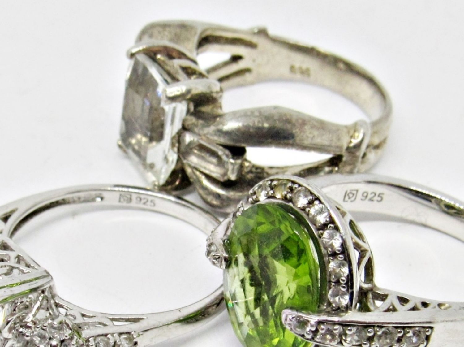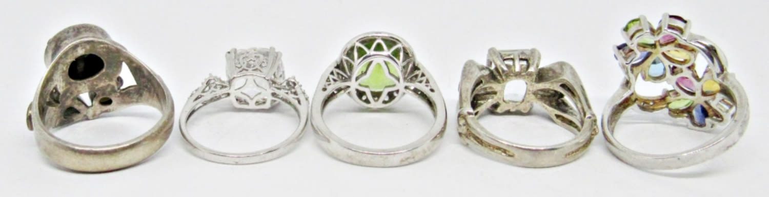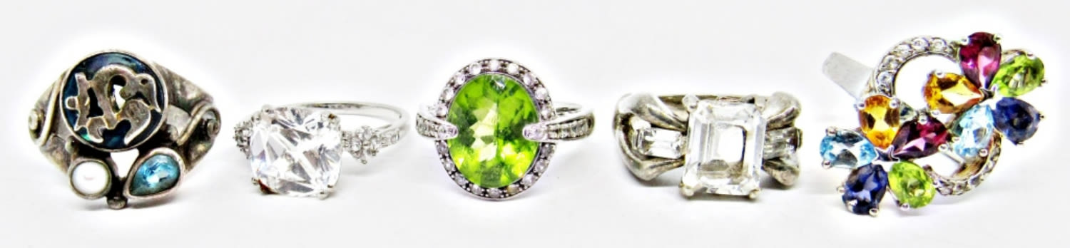 LARGE SPARKLY FASHION BLING RINGS; VINTAGE STERLING SILVER; MULTI-COLOR STONES; ALL SIZE 7