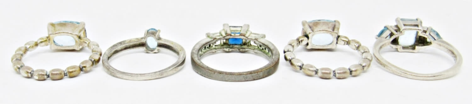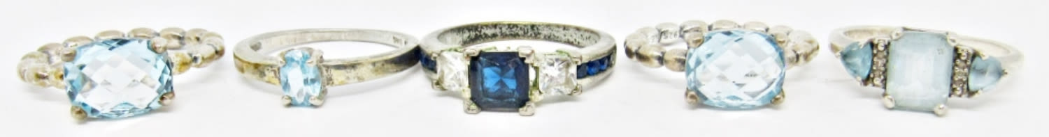 SPARKLY FASHION RINGS; VINTAGE STERLING SILVER; MULTI-COLOR BLUE TONE STONES; SIZES 6-8 (10 DWT)