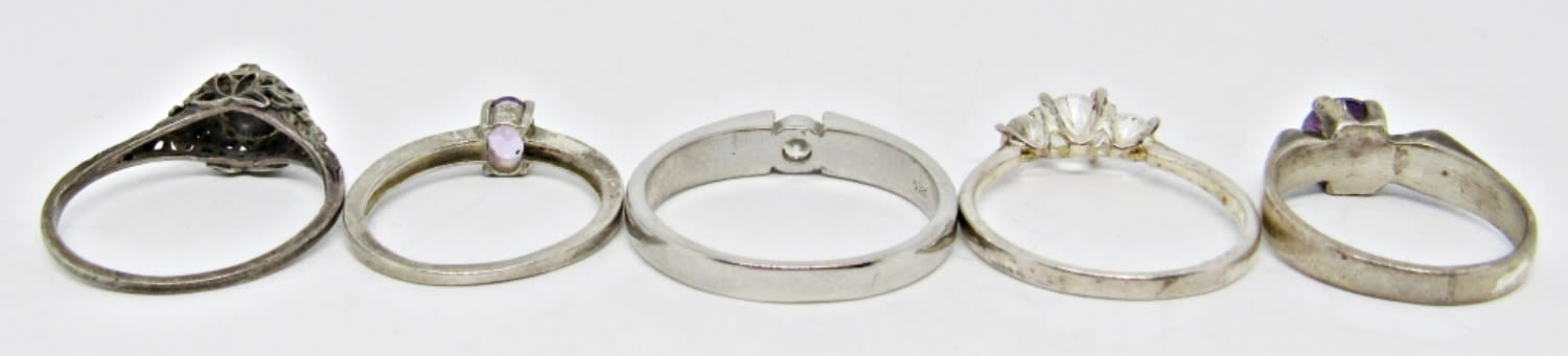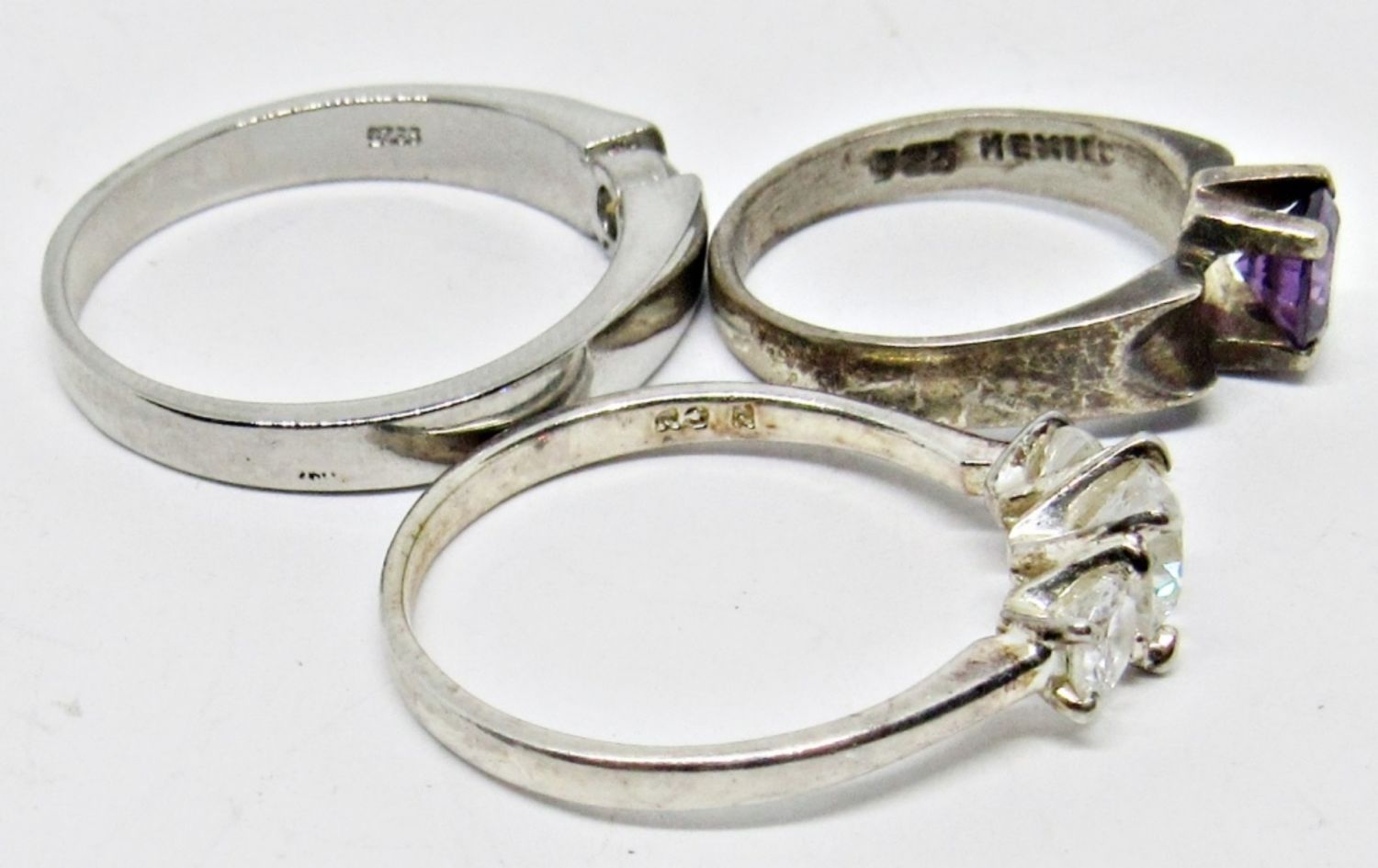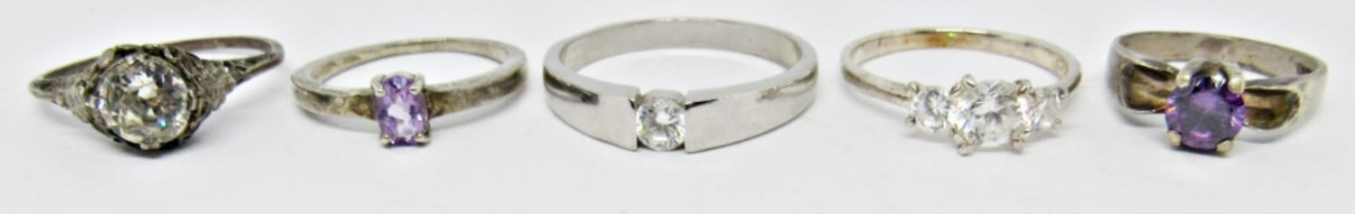 SPARKLY FASHION RINGS; VINTAGE STERLING SILVER; MULTI-COLOR PURPLE CLEAR TONE STONES; VARIOUS SIZES (8 DWT)