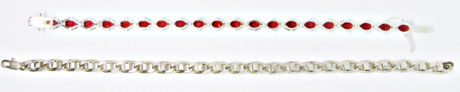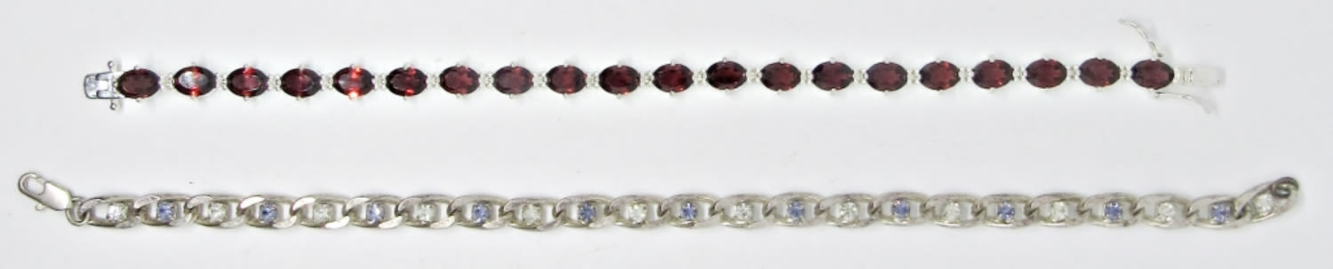 BEAUTIFUL STERLING SILVER TENNIS BRACELETS WITH MULTI-COLOR RHINESTONES; MARKED 925 – 7″ & 8 1/2″ LONG (16 DWT)
