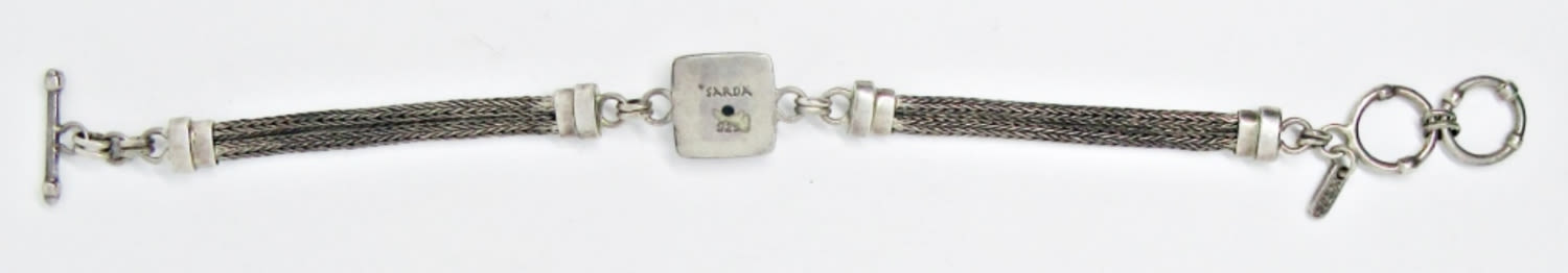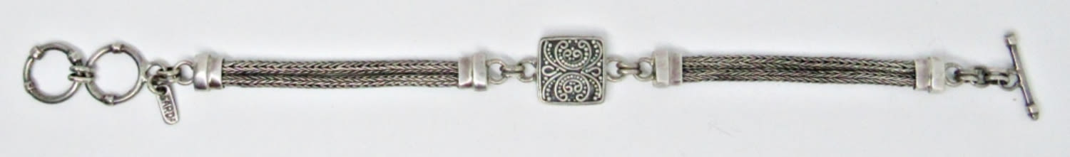 “SARDA” STERLING SILVER BRACELET; ORNATE DESIGN; TOGGLE ADJUSTABLE LENGTH; MARKED 925 (10 DWT)