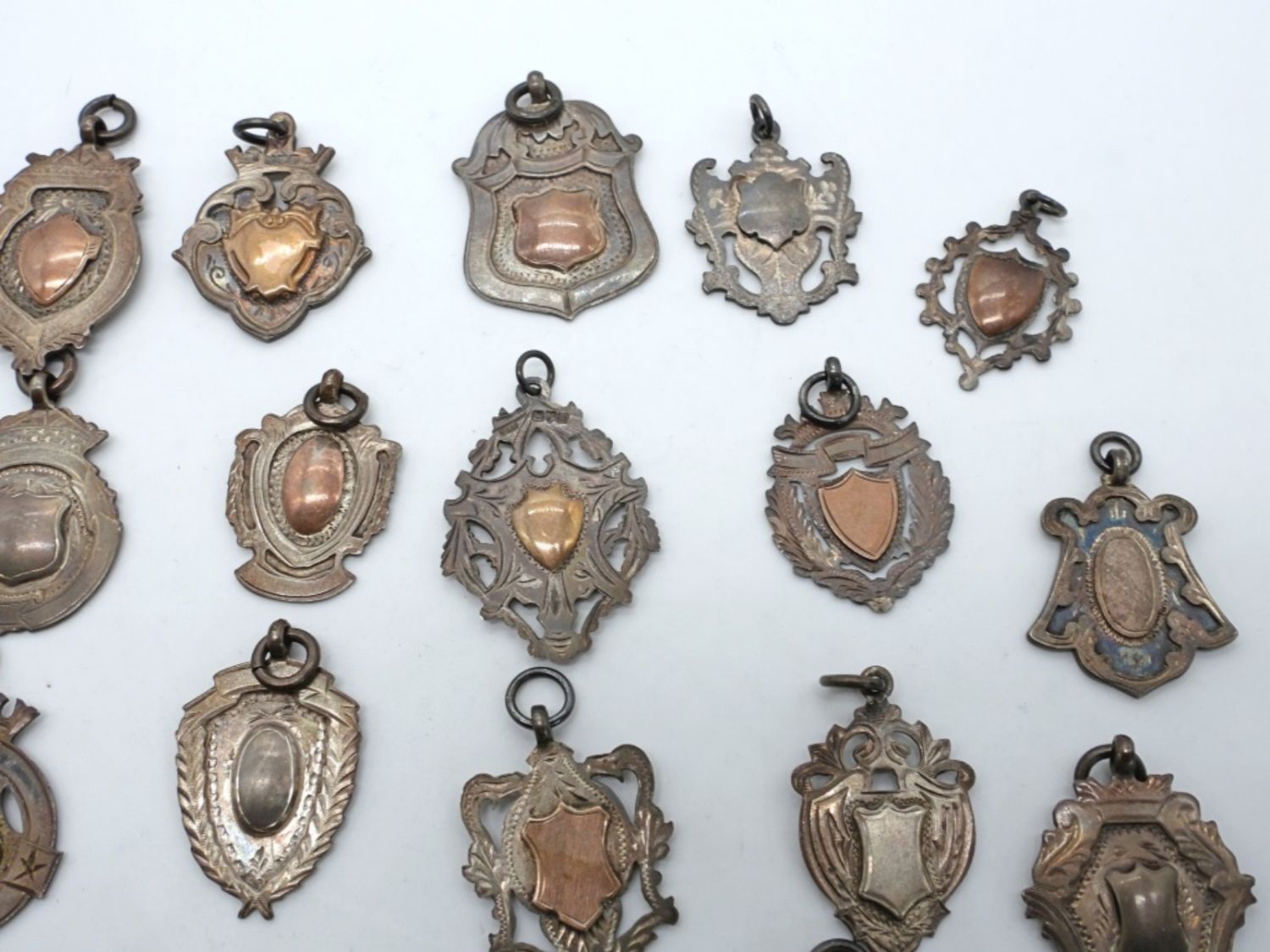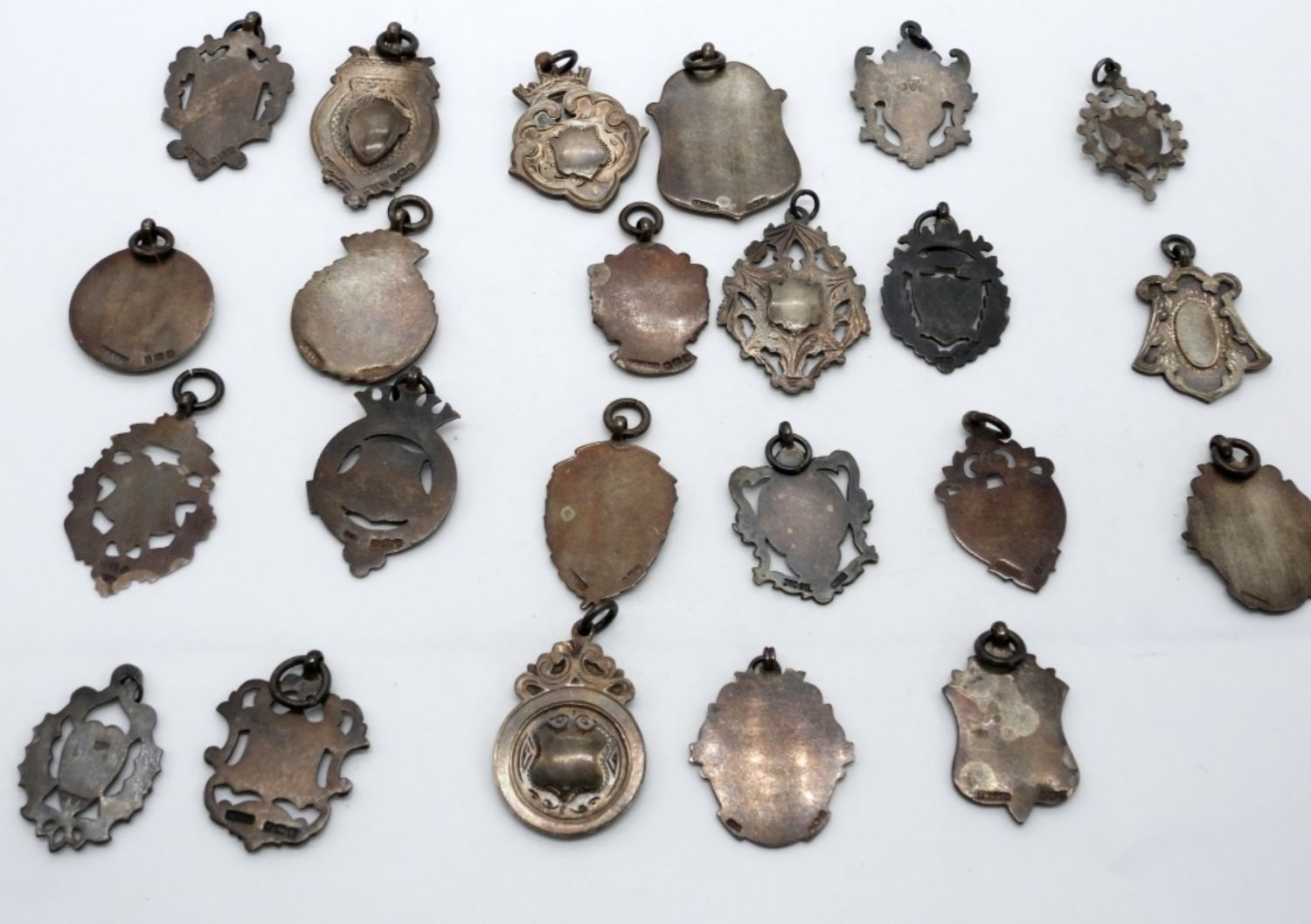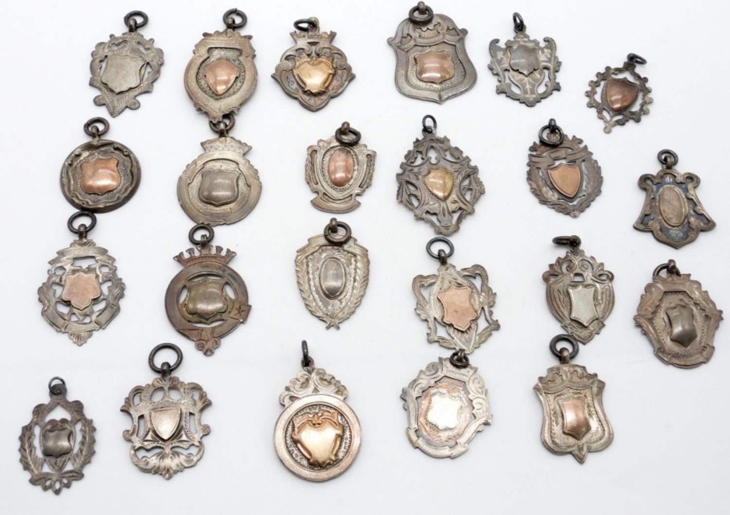 SOME STAMPED FH ADAM & CO; WHL; HB&S; P.W. – SHIELD DESIGN – SOME with ROSE GOLD / PLATED GOLD (23 PIECES) – 79 DWT TOTAL