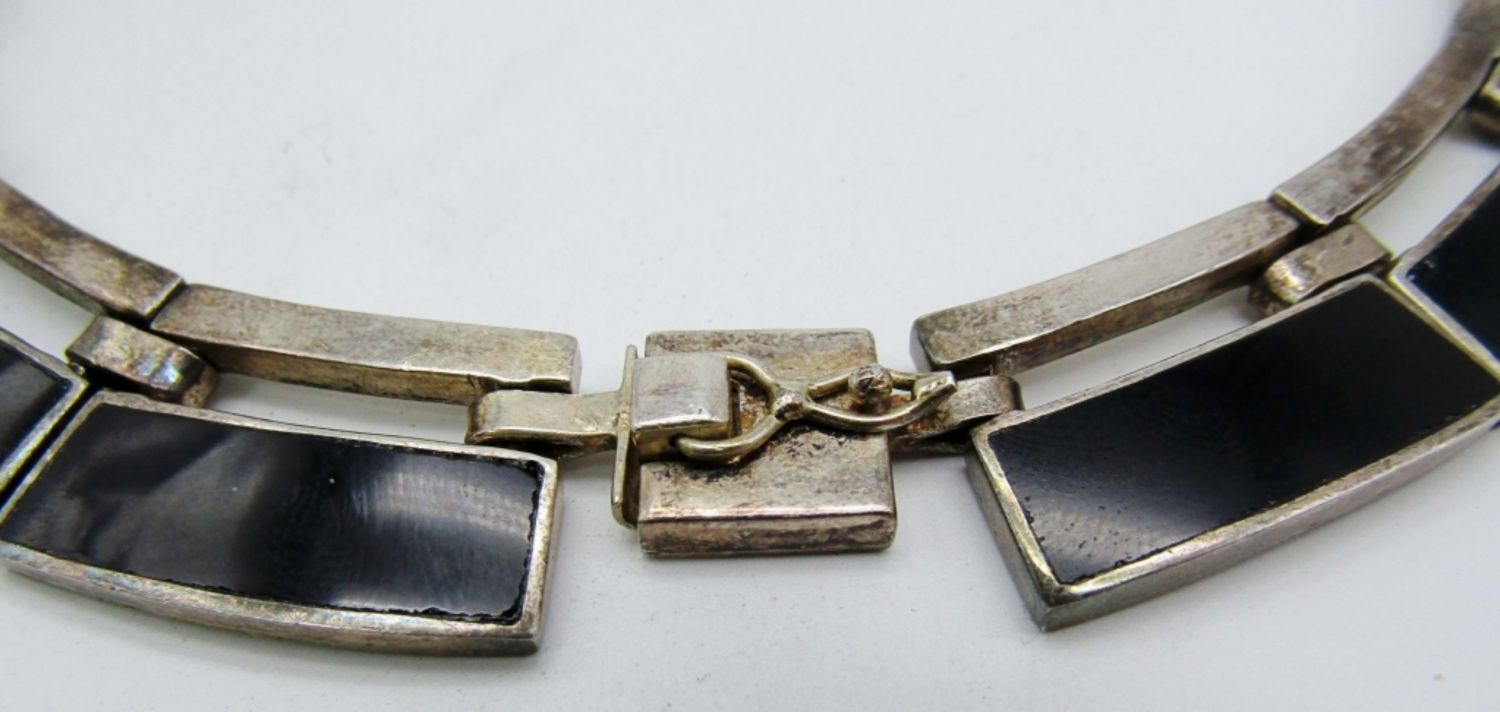 80dwt, 12in, black onyx inlay stamped tn-75 925 Mexico, open box clasp