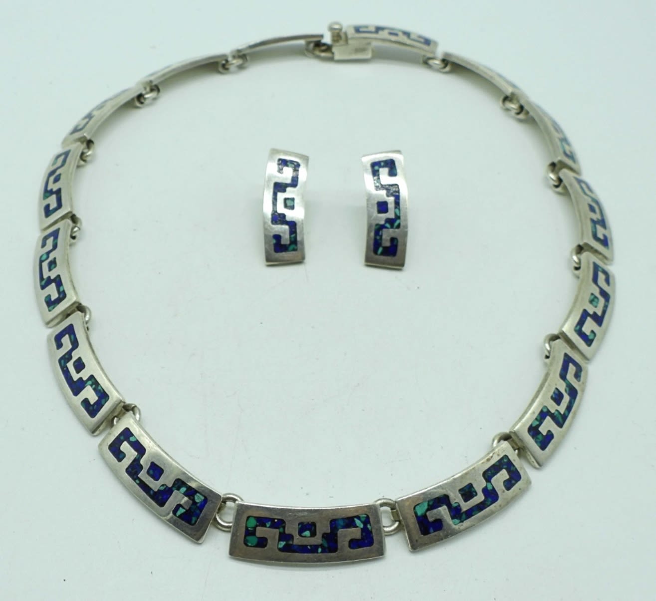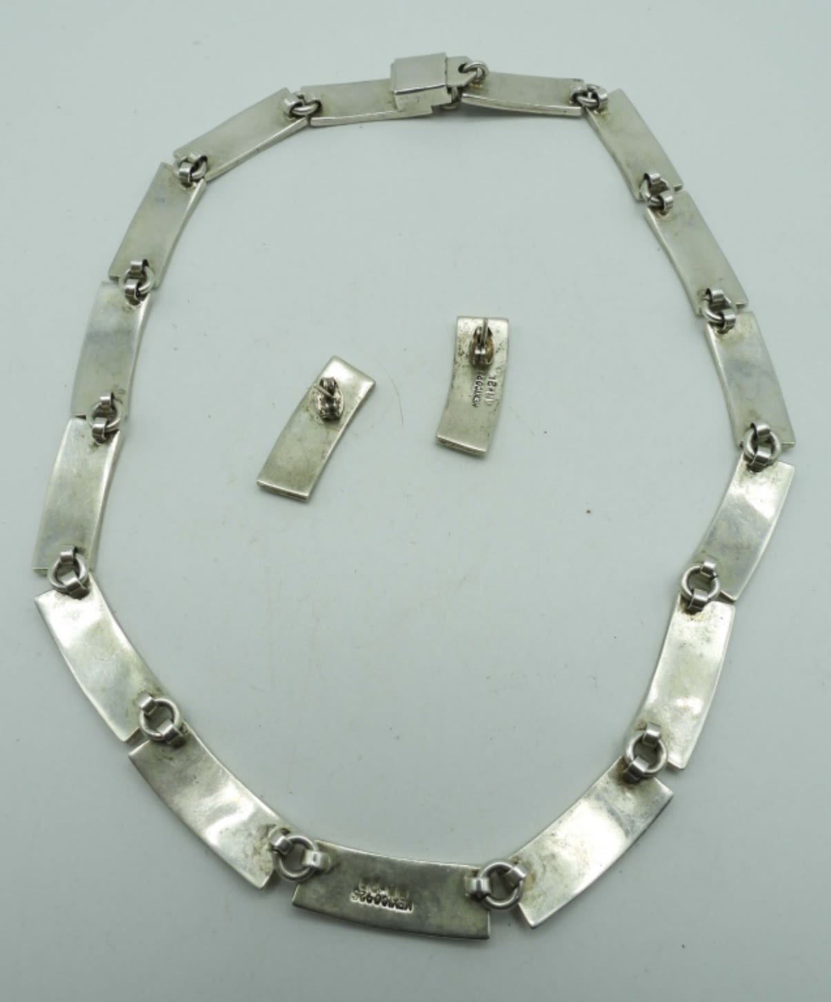 50 DWT, 17IN LENGTH, BOTH ITEMS STAMPED MEXICO 925 WITH MM-20, OPEN BOX CLASP FOR NECKLACE, PIERCED EARRINGS