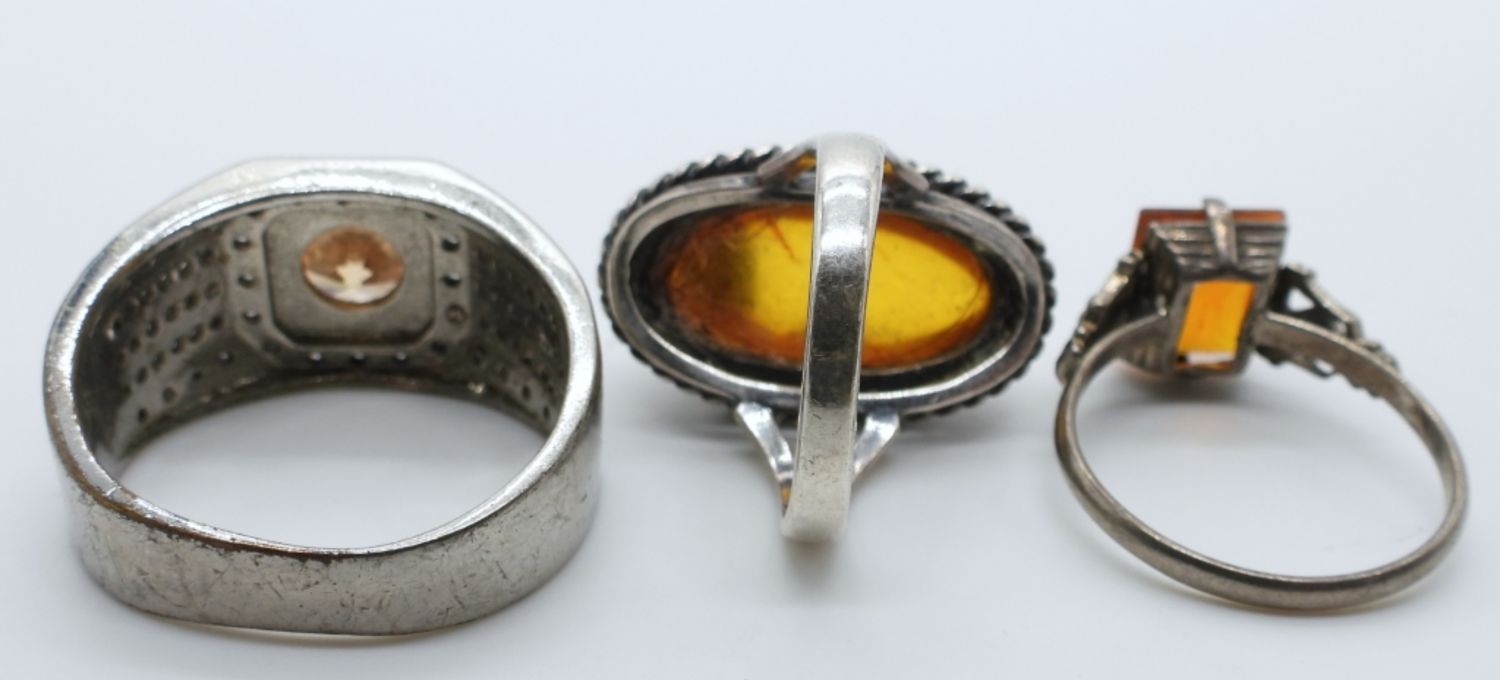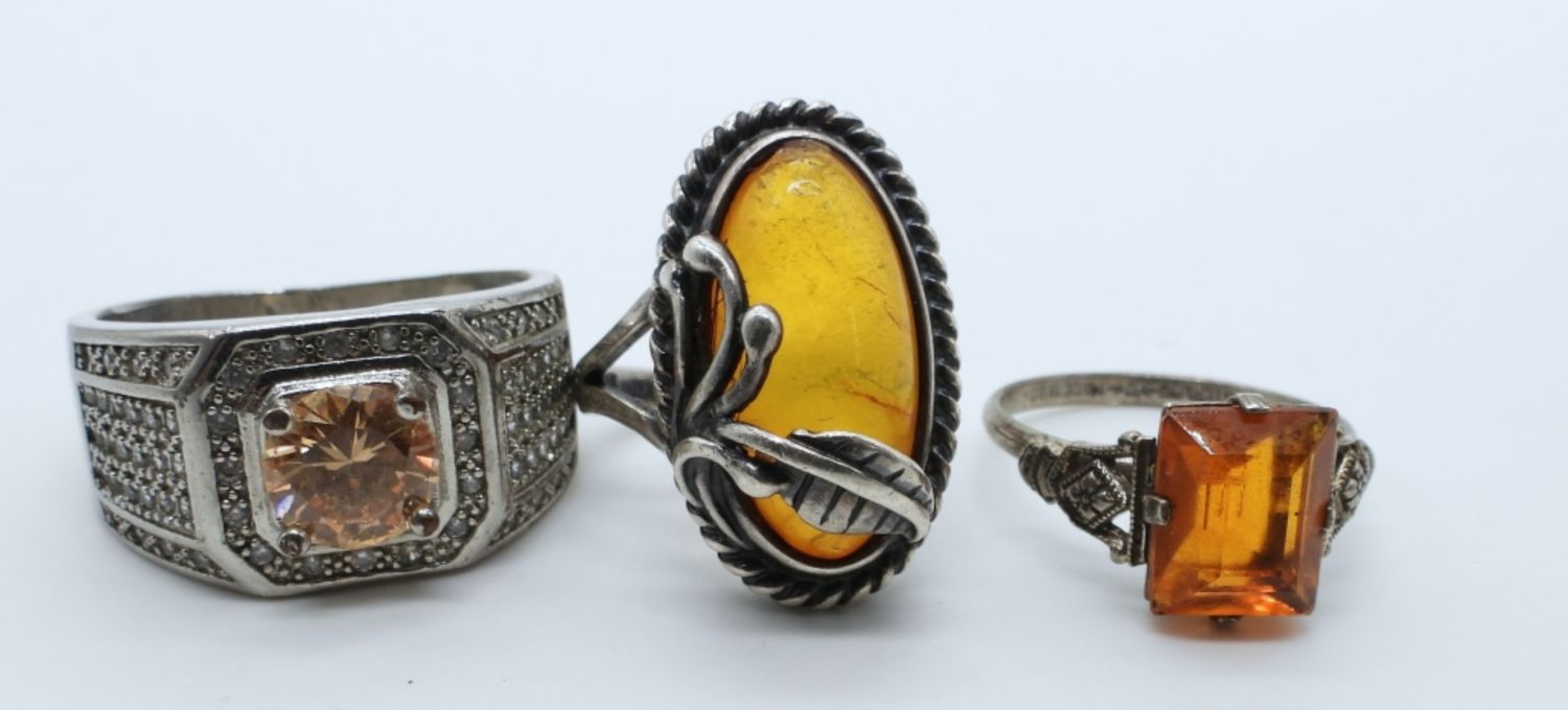(1) MENS SIZE 11, (1) SOUTHWEST BALTIC AMBER SIZE 5.5 (1) ANTIQUE SIZE 8 ( 10 DWT)