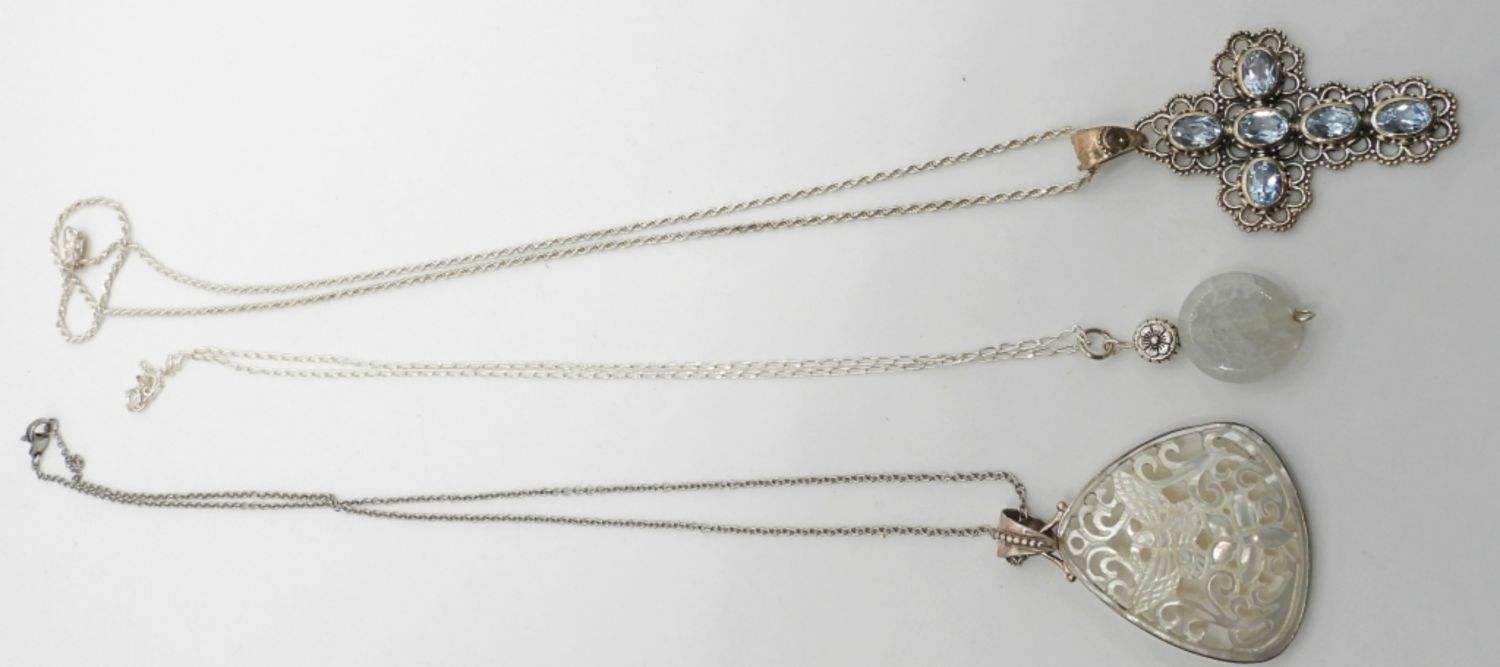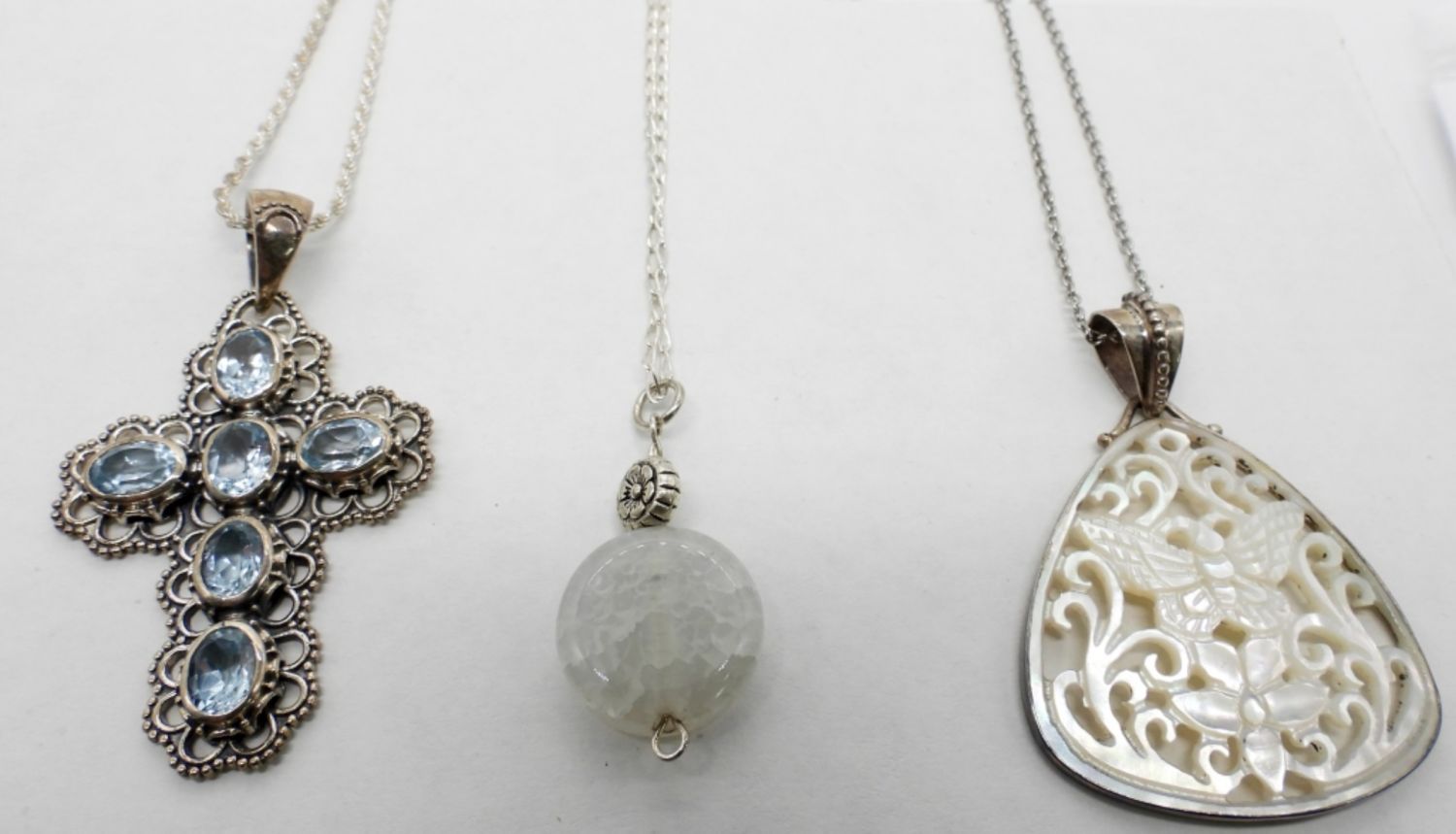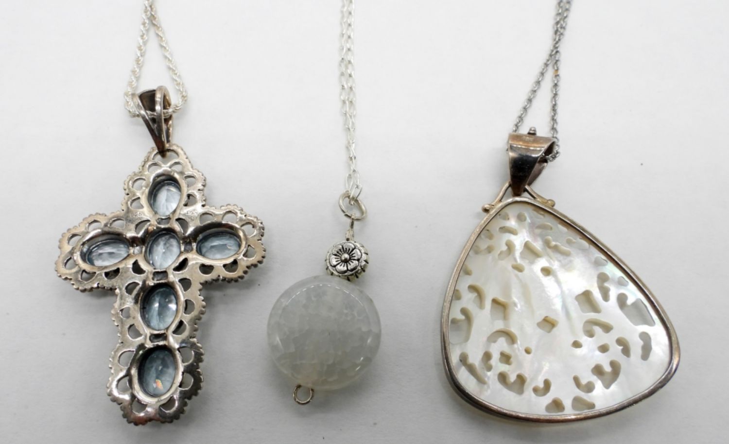 CARVED SHELL & CIRCLE STONE PENDANT – VARIOUS LENGTHS