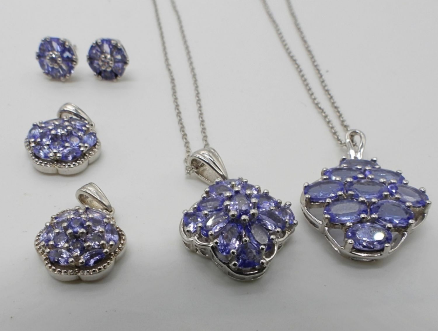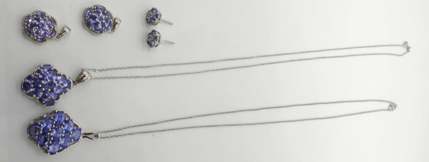 18″ & 20″ NECKLACES with PENDANTS, (2) MATCHING DAINTY PENDANTS & PIERCED EARRING SET ALL LIKE NEW ( 9 DWT)