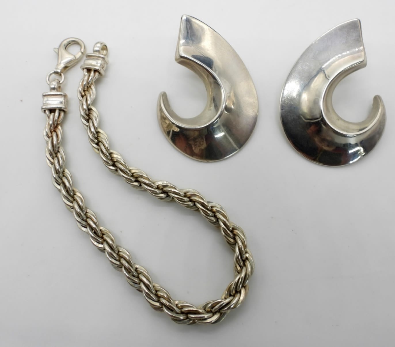7″ BRACELET, PIERCED EARRINGS (13 DWT)