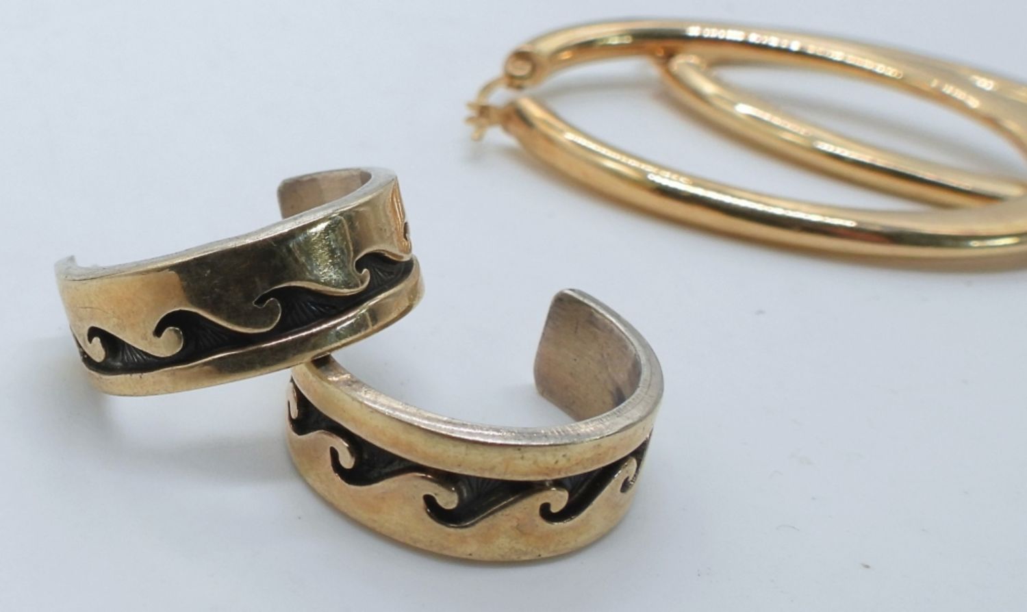 LARGE HOOPS GOLD PLATED STERLING; 1 HOPI (9 DWT)