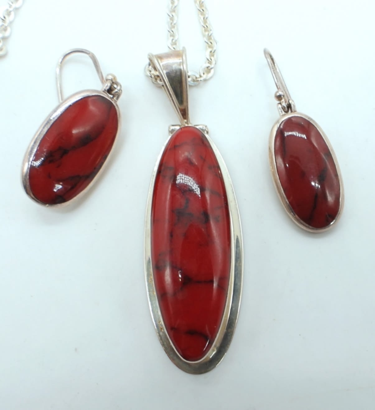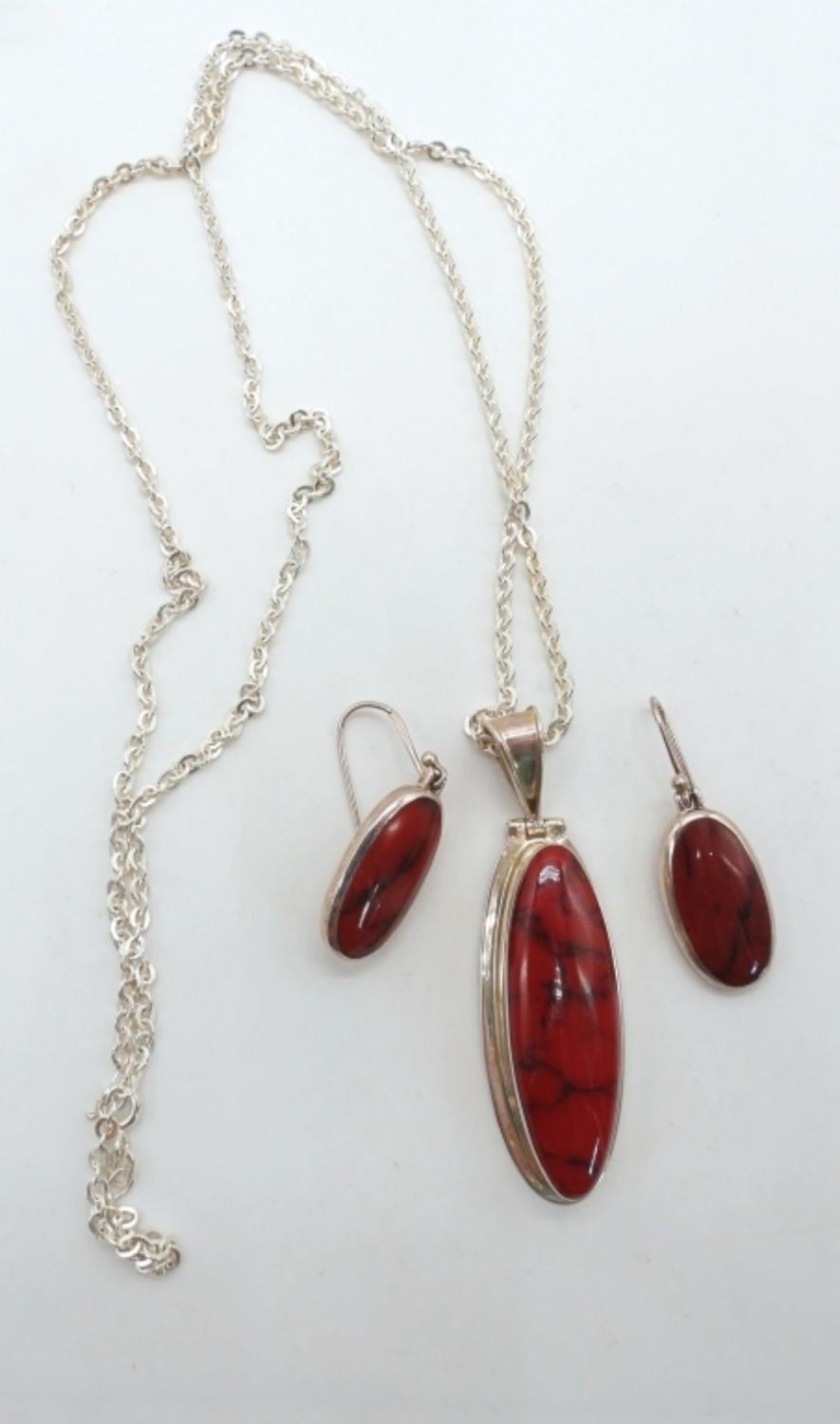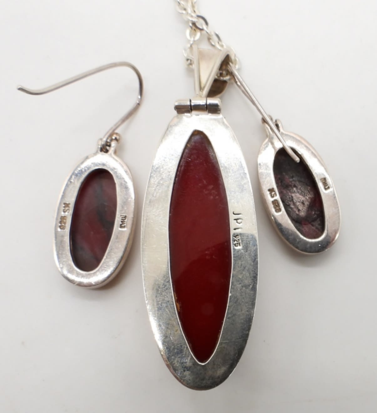 28″ LONG NECKLACE with 2 1/2″ PENDANT stamped “JPI 925” & EARRINGS stamped “925 SX” THIA – (19 DWT TOTAL)