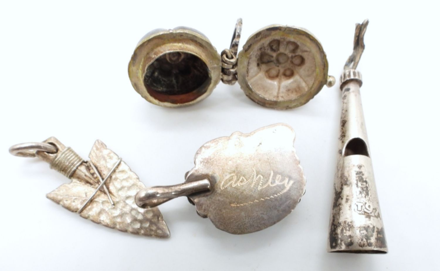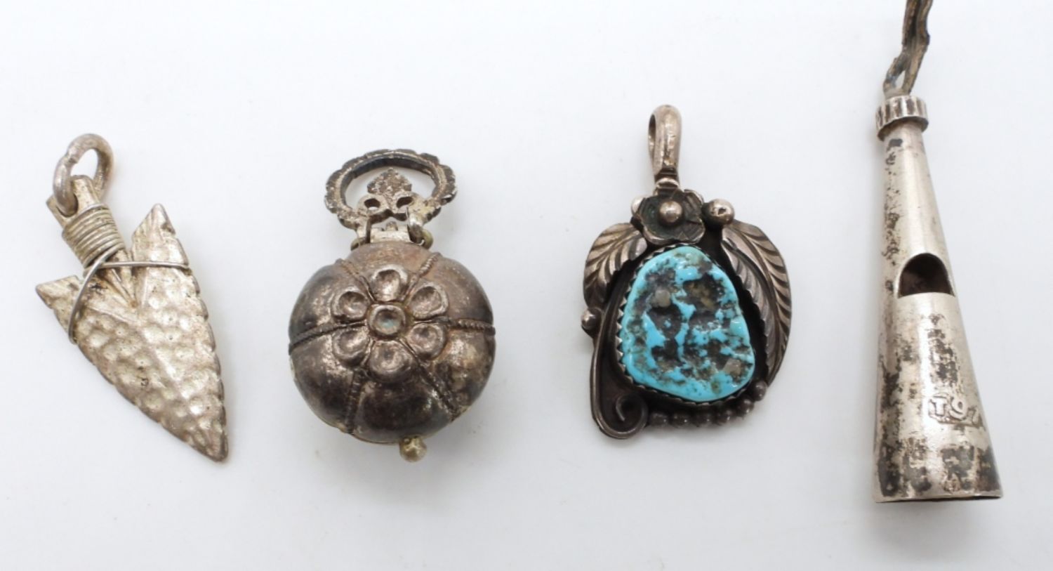 POISON LOCKET, ARROWHEAD, TURQUOISE PENDANT & WHISTLE PENDANT needs loop fixed ( 16 DWT)