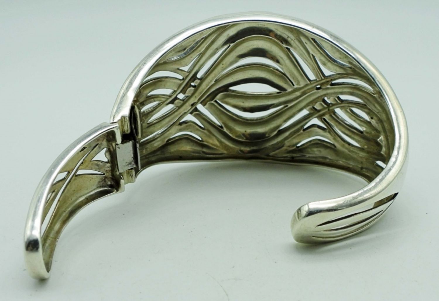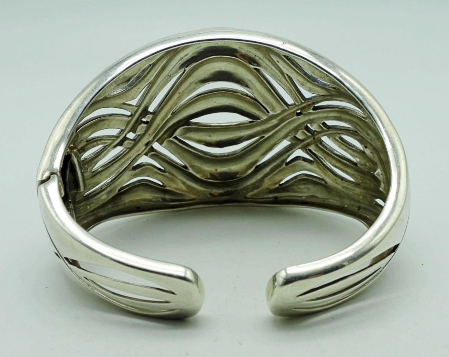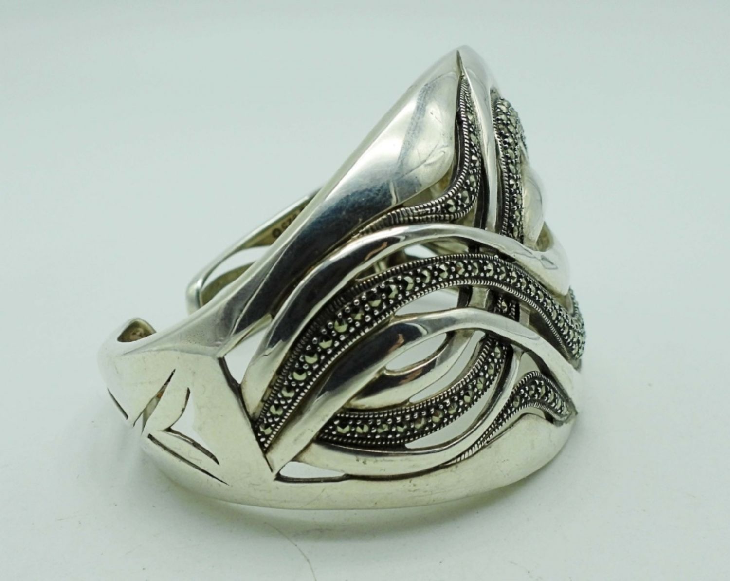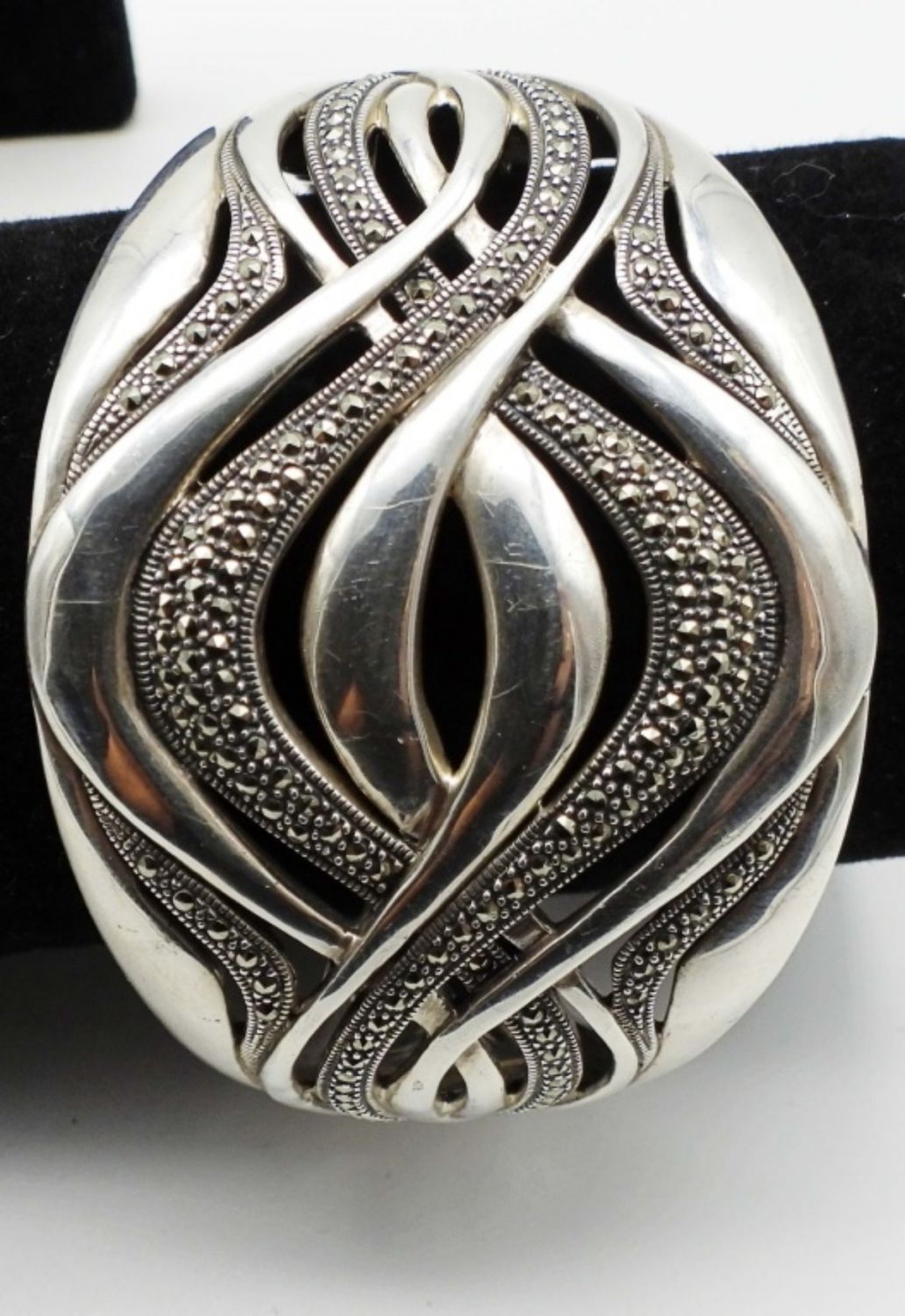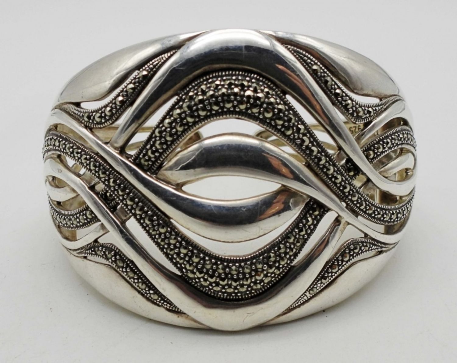 38DWT, MARCASITE STONES MAKE A WAVE-LIKE DESIGN, STAMPED 925 ON THE INSIDE