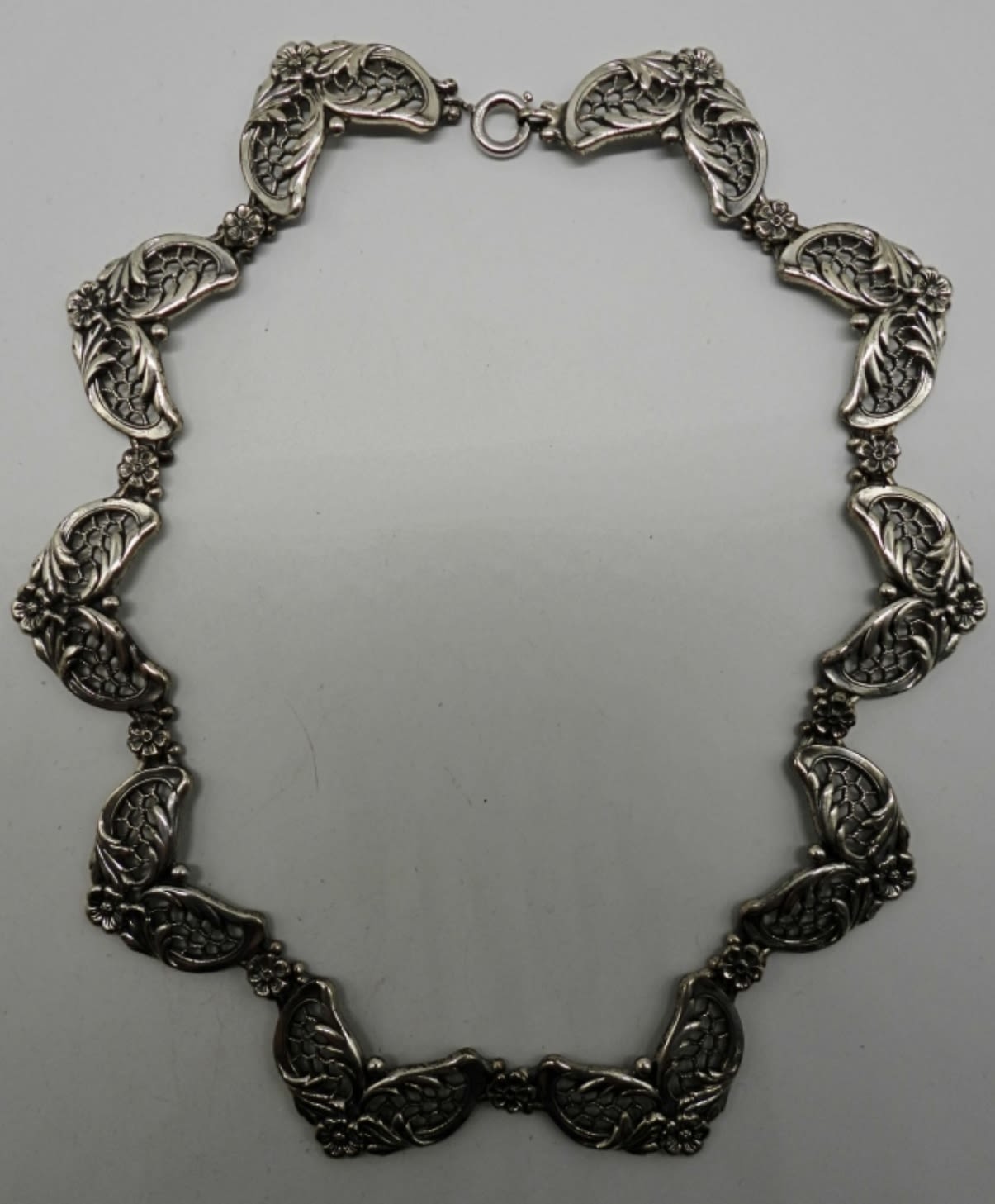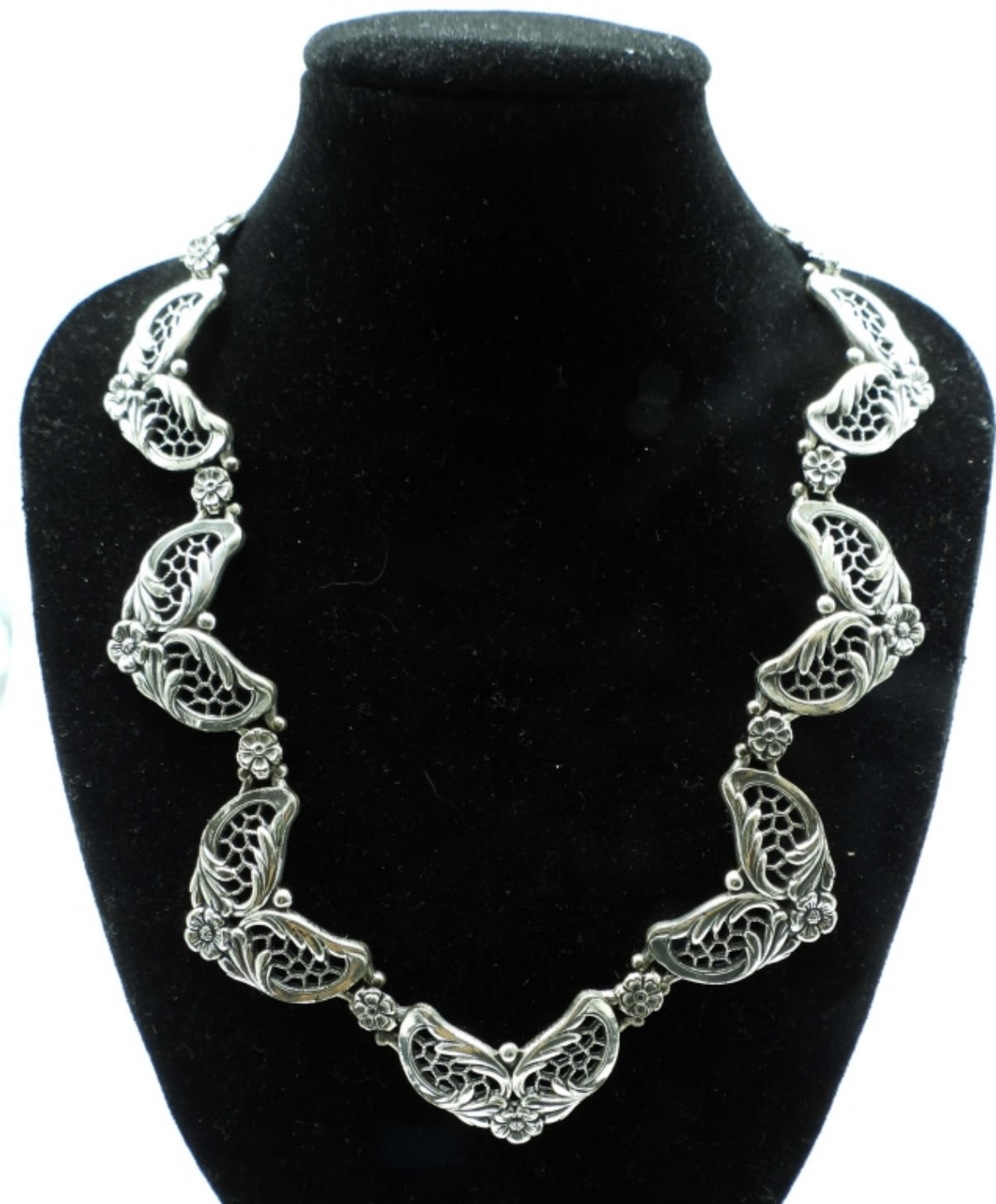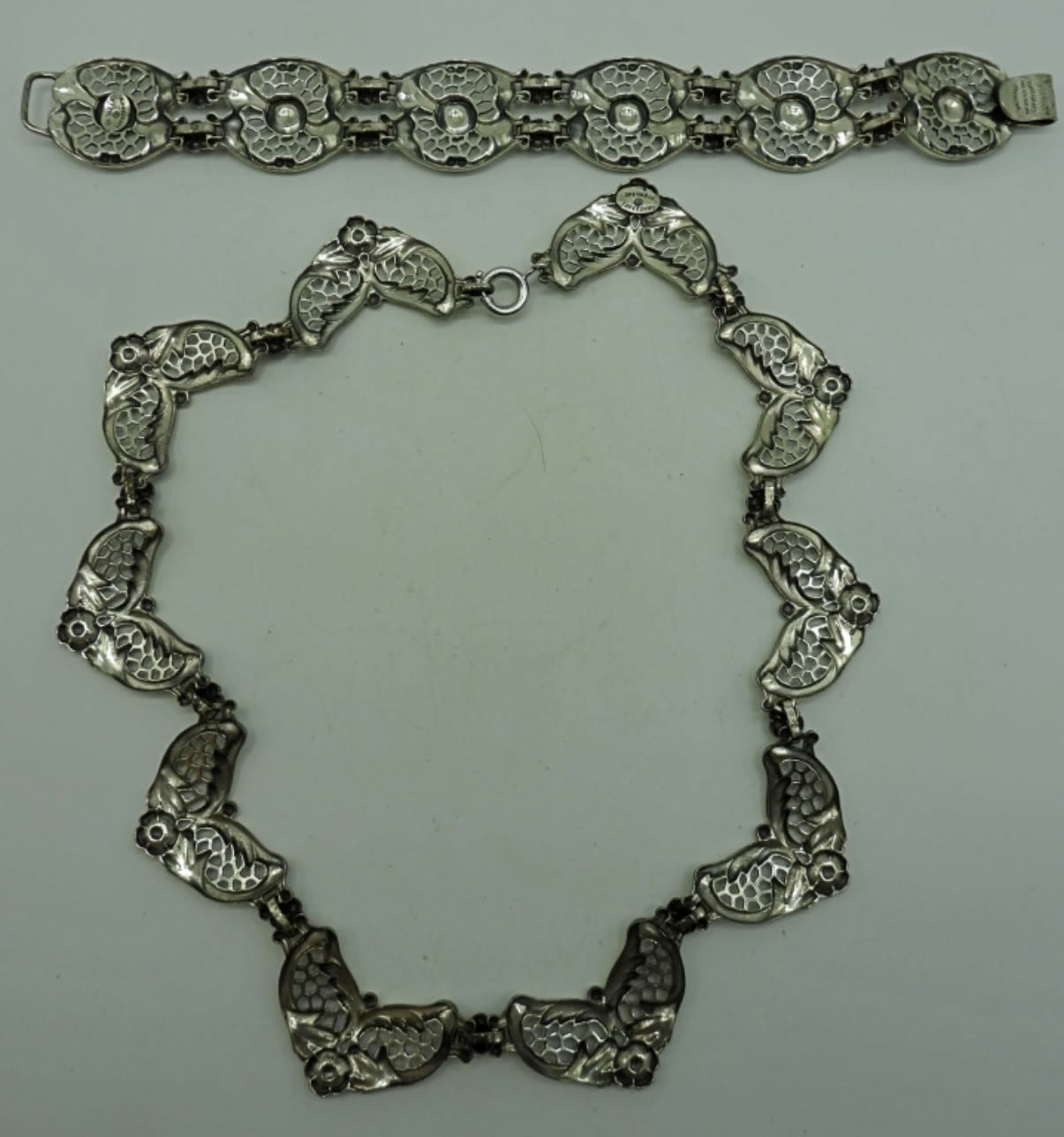 41.5DWT, BOTH HAVE FLOWER AND LEAF DESIGNS, BEAUTIFUL NECKLACE IS 15 1/2IN LENGTH, BRACELET 7 1/2IN LENGTH, BOTH STAMPED DANECARFT STERLING,