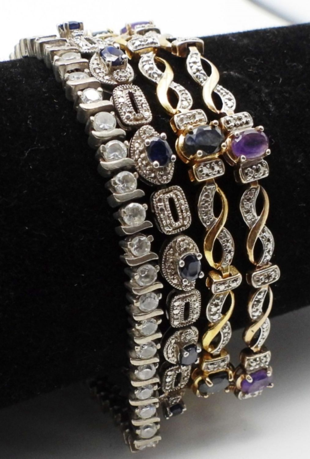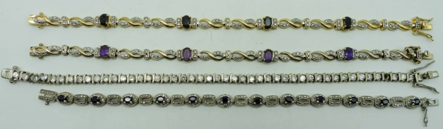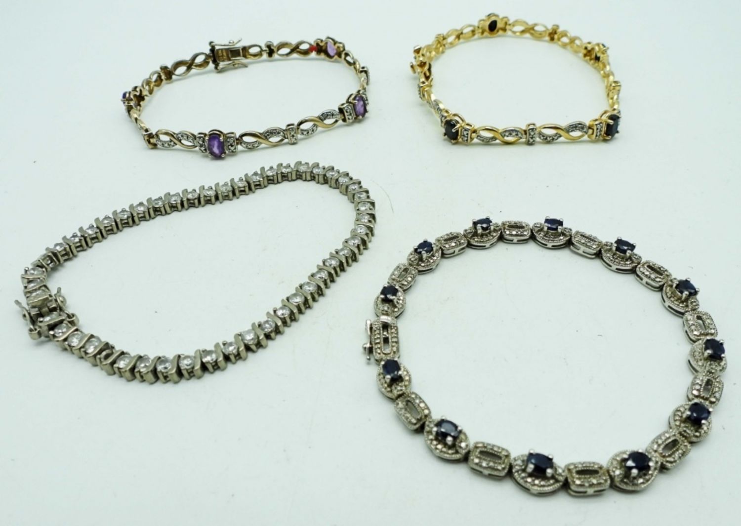 CLEAR STONE BRACELET missing (1) STONE – SIZES 7″ – 7.5″ – ALL WORKING LATCHES (26 DWT)