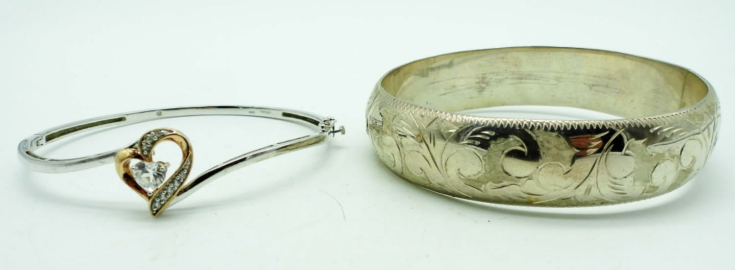 (1) with 14k GOLD PLATED HEART (1) ETCHED STERLING THAILAND (21 DWT)