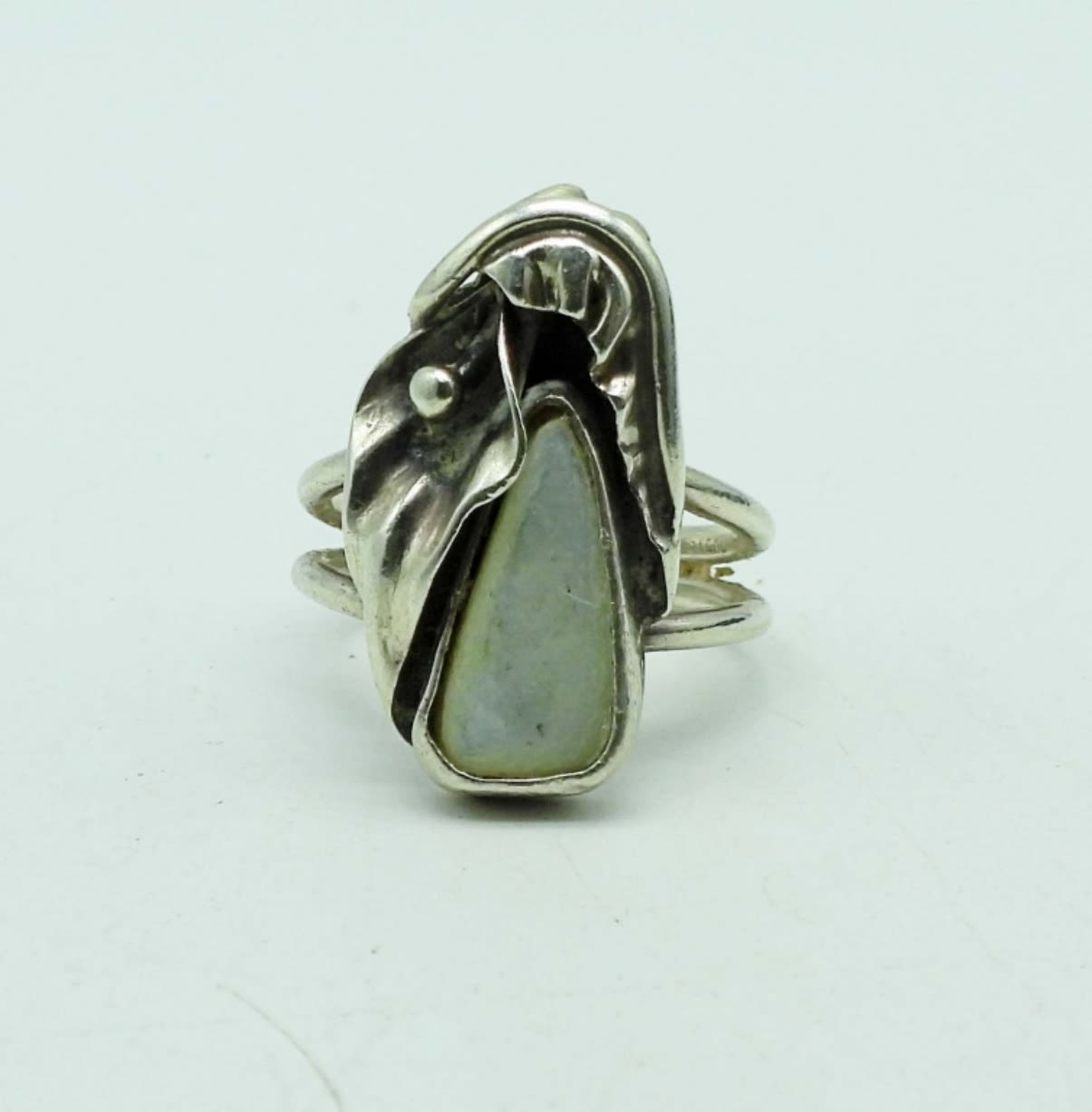 BEAUTIFUL LEAF DESIGN with MOTHER of PEARL, RING SIZE 7 (TOTAL 5 DWT)